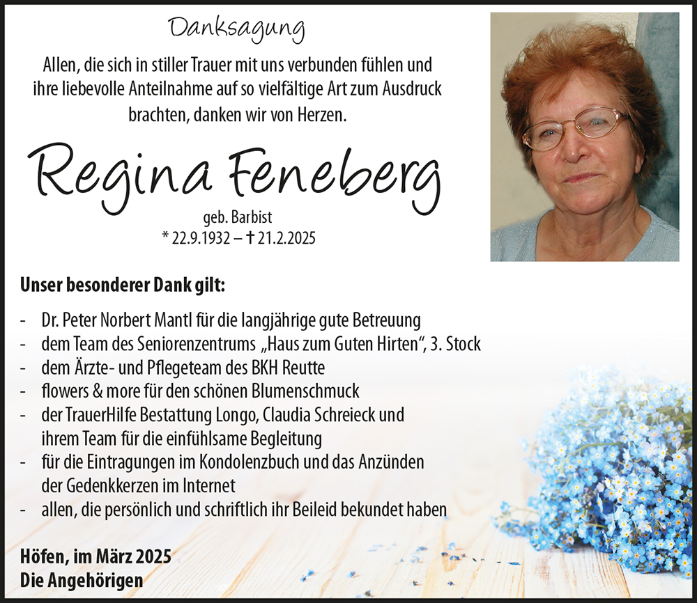 • Liebe Angelika! Lieber Stefan! Mein aufrichtiges Beileid zum Verlust deiner Mama deiner Oma. Liebe Regina schlaf wohl ♥️ LISI