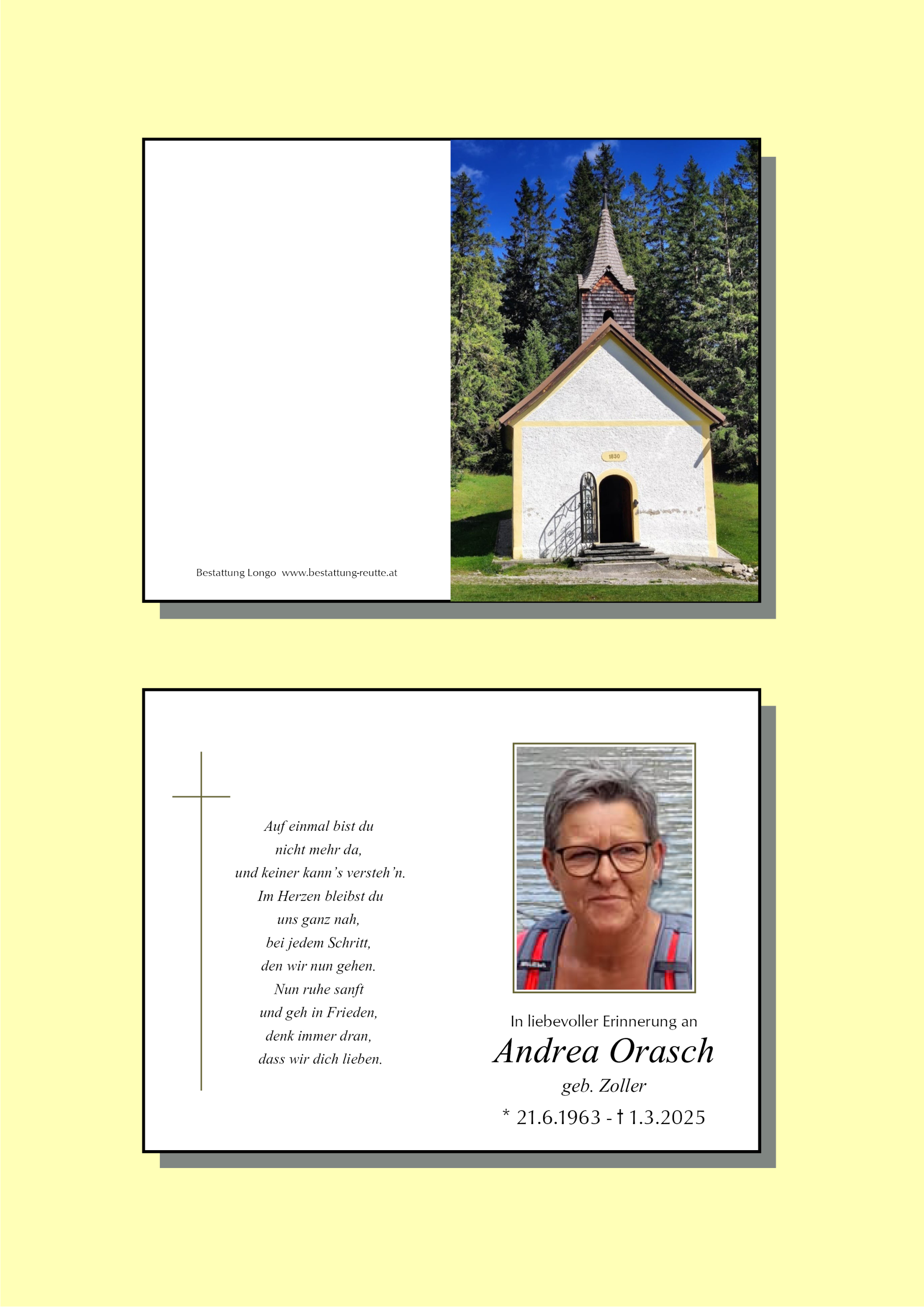 Sprachlos über den viel zu frühen Tod eurer geliebten Andrea möchte ich euch mein herzliches Beileid aussprechen. Ich wünsche euch viel Kraft für die schwere Zeit.