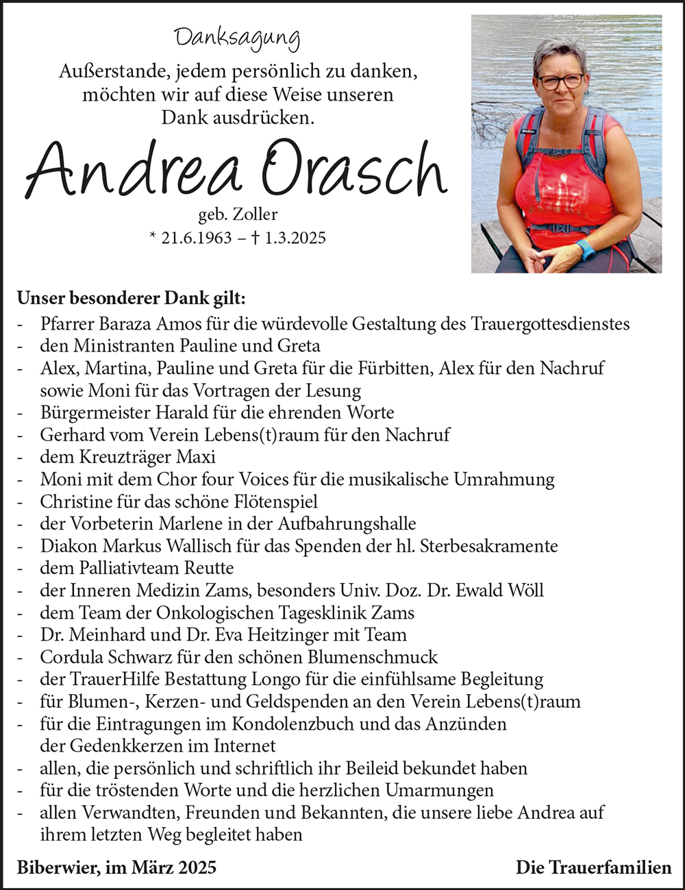 In tiefer Betroffenheit möchten wir euch und euren Lieben unser aufrichtiges Beileid aussprechen. Mögen eure zahlreichen und schönen Erinnerungen an eure liebe Andrea in der schweren Zeit der Trauer und des Loslassens Kraft und Trost spenden.
