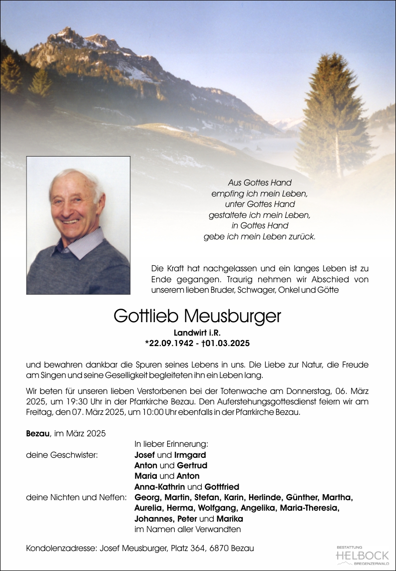 Friedhof Bezau, † 01.03.2025 (82 Jahre)