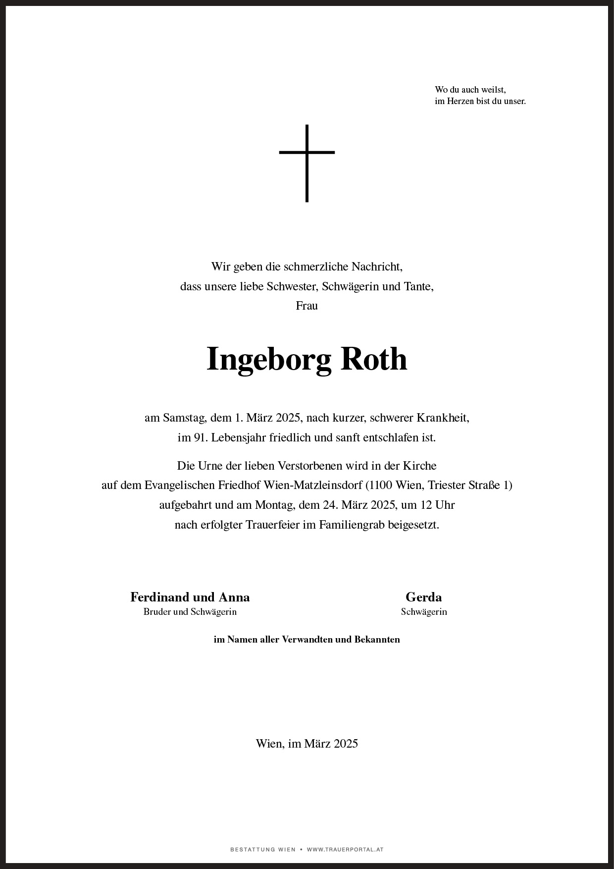 Friedhof † 01.03.2025 (90 Jahre)