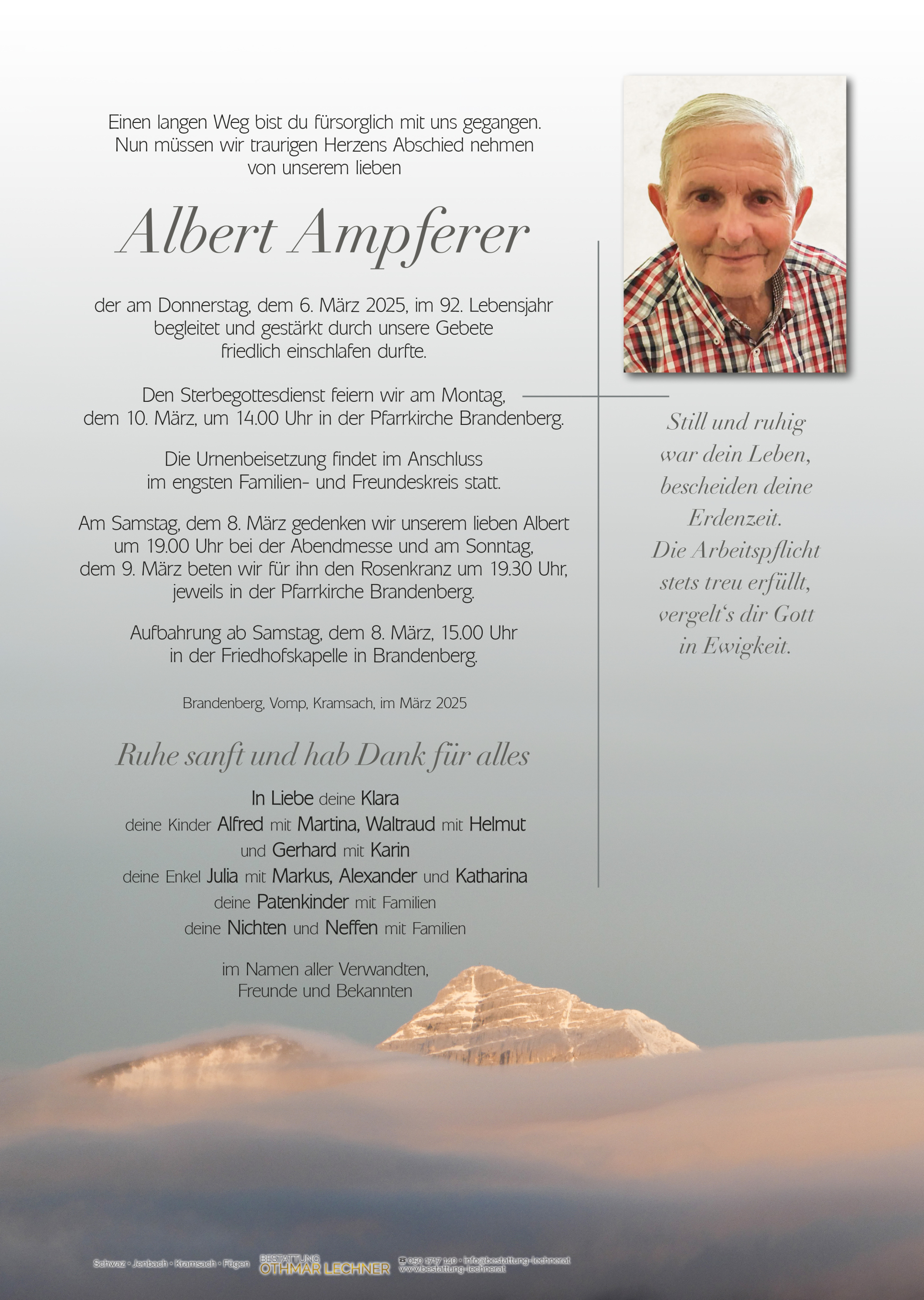Friedhof Brandenberg, † 06.03.2025 (91 Jahre)