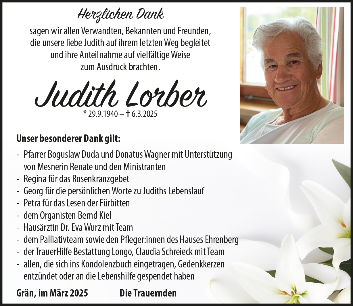 Bestattung wurde durchgeführt von: Claudia Schreieck Bestattung Longo Lechtalerstraße 32a 6600 - Lechaschau Tel.: 05672 62577 zum Bestatter