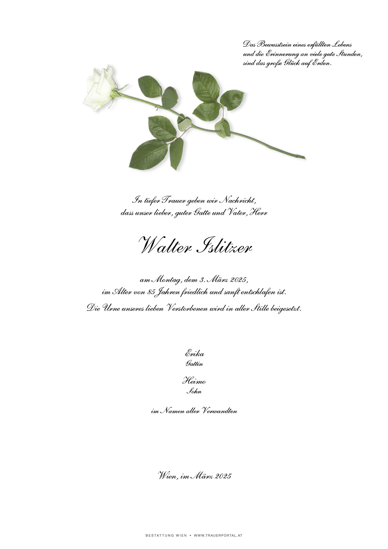 Bestattung wurde durchgeführt von: