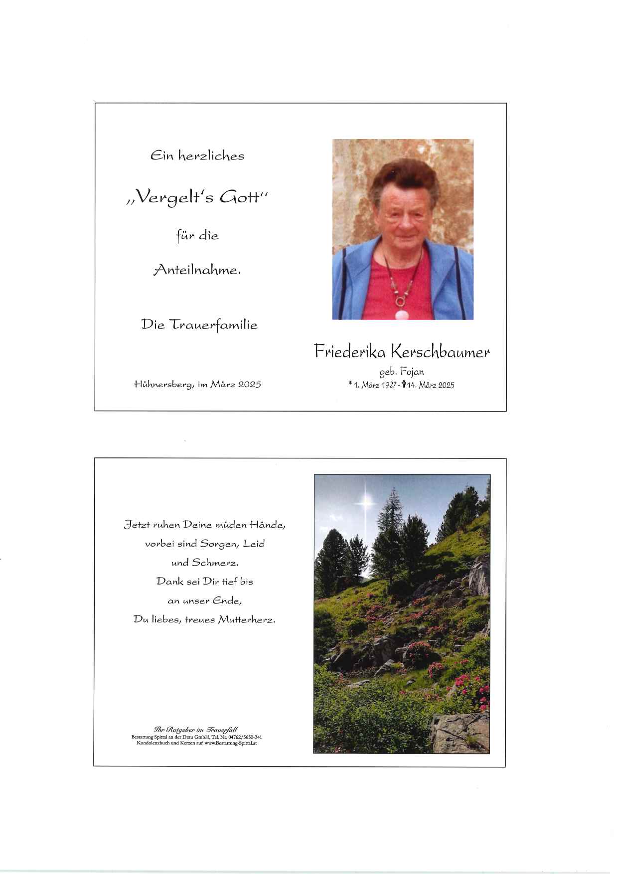 Neue Kerze für Friederika Kerschbaumer entzünden.