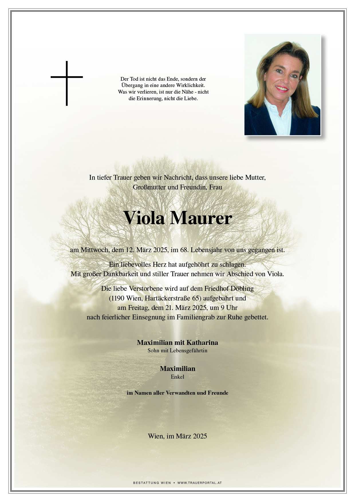 Bestattung wurde durchgeführt von: Bestattung Wien Bestattung Wien GmbH Simmeringer Hauptstraße 339 1110 - Wien (Simmering) Tel.: 01 501950 zum Bestatter
