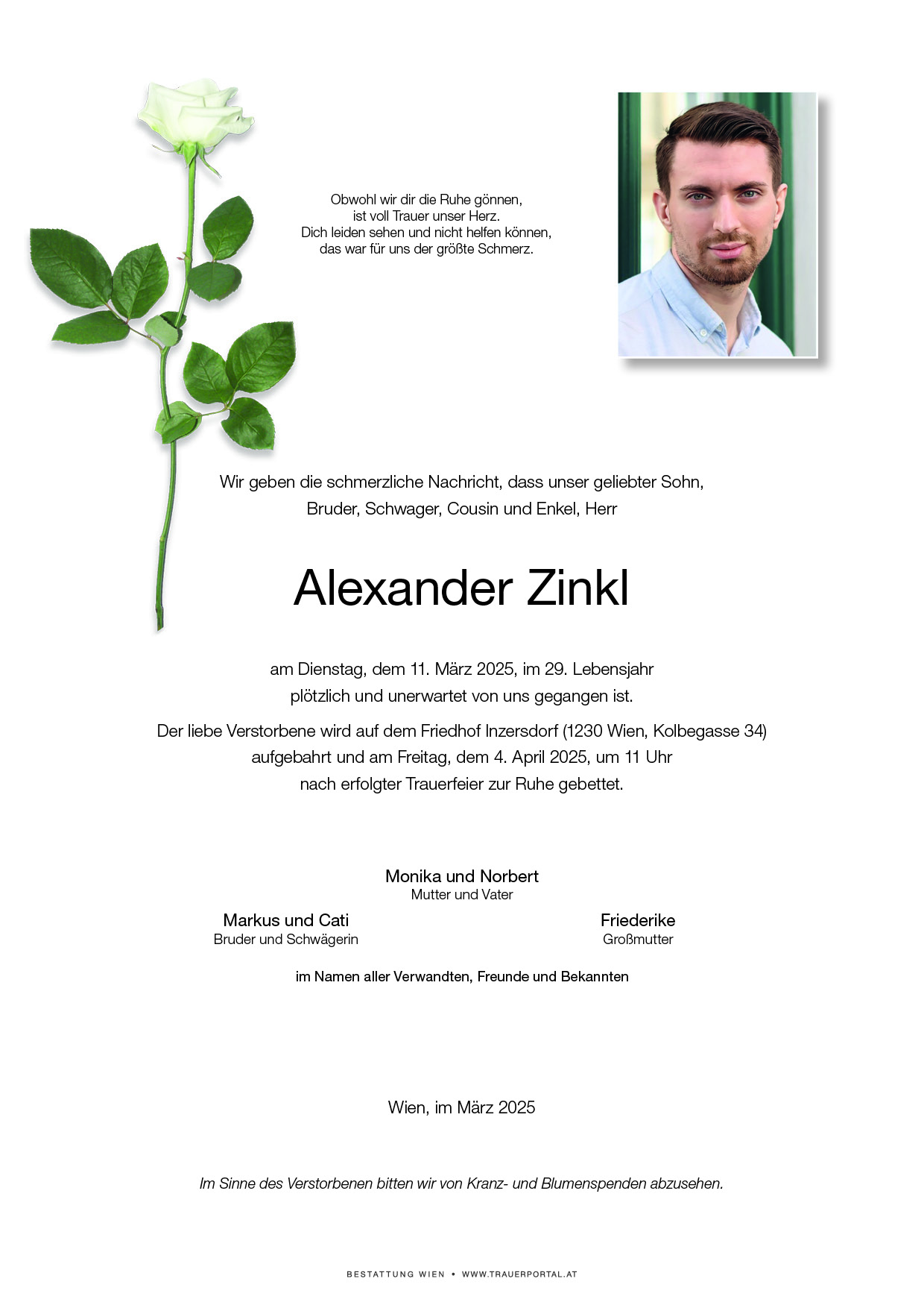 Bestattung wurde durchgeführt von: Bestattung Wien Bestattung Wien GmbH Simmeringer Hauptstraße 339 1110 - Wien (Simmering) Tel.: 01 501950 zum Bestatter