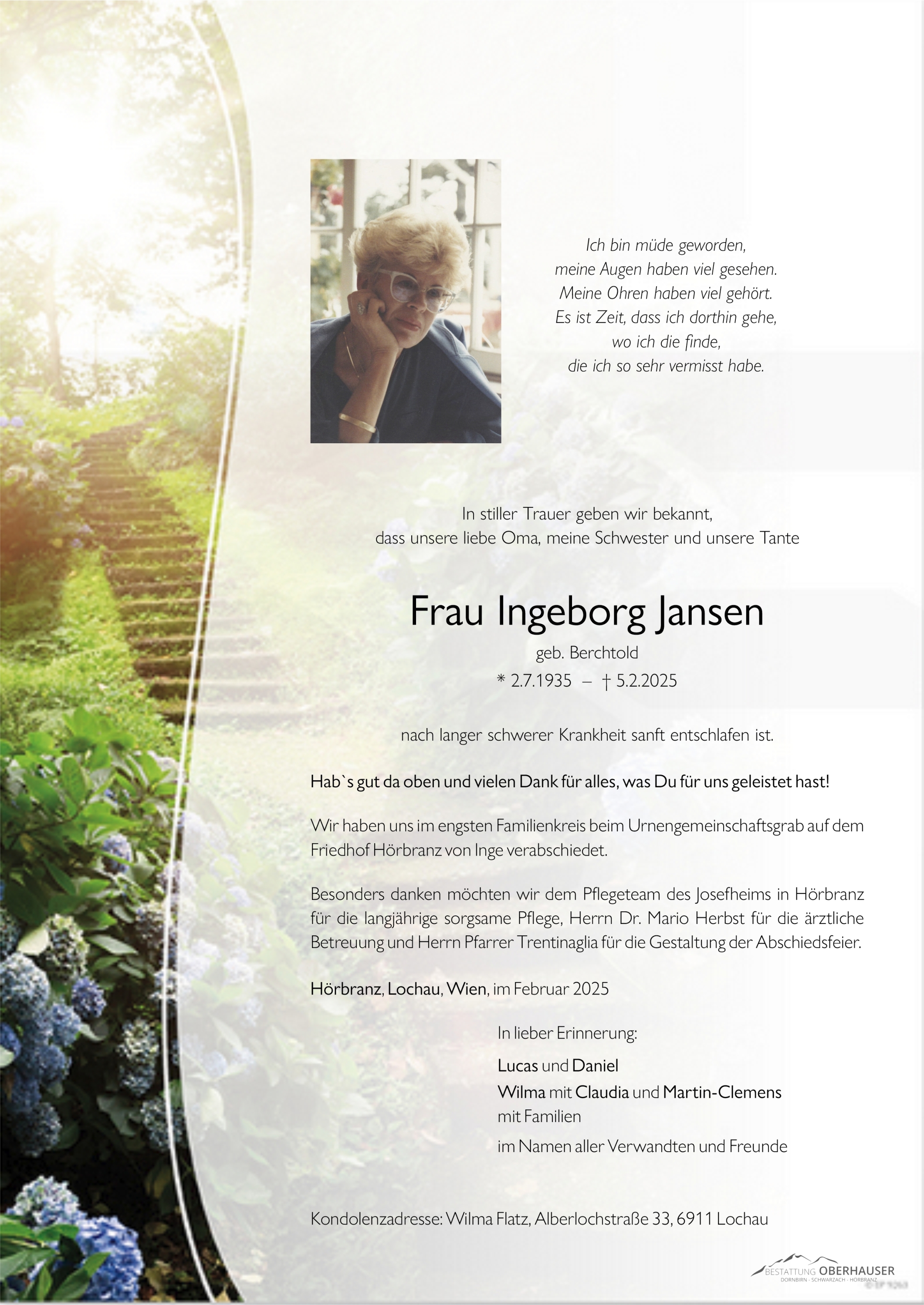 Friedhof Hörbranz, † 05.02.2025 (89 Jahre)