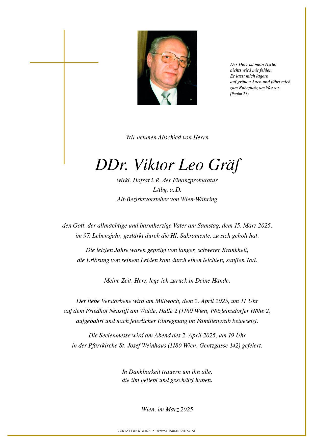 Neue Kerze für Viktor Leopold Gräf entzünden.