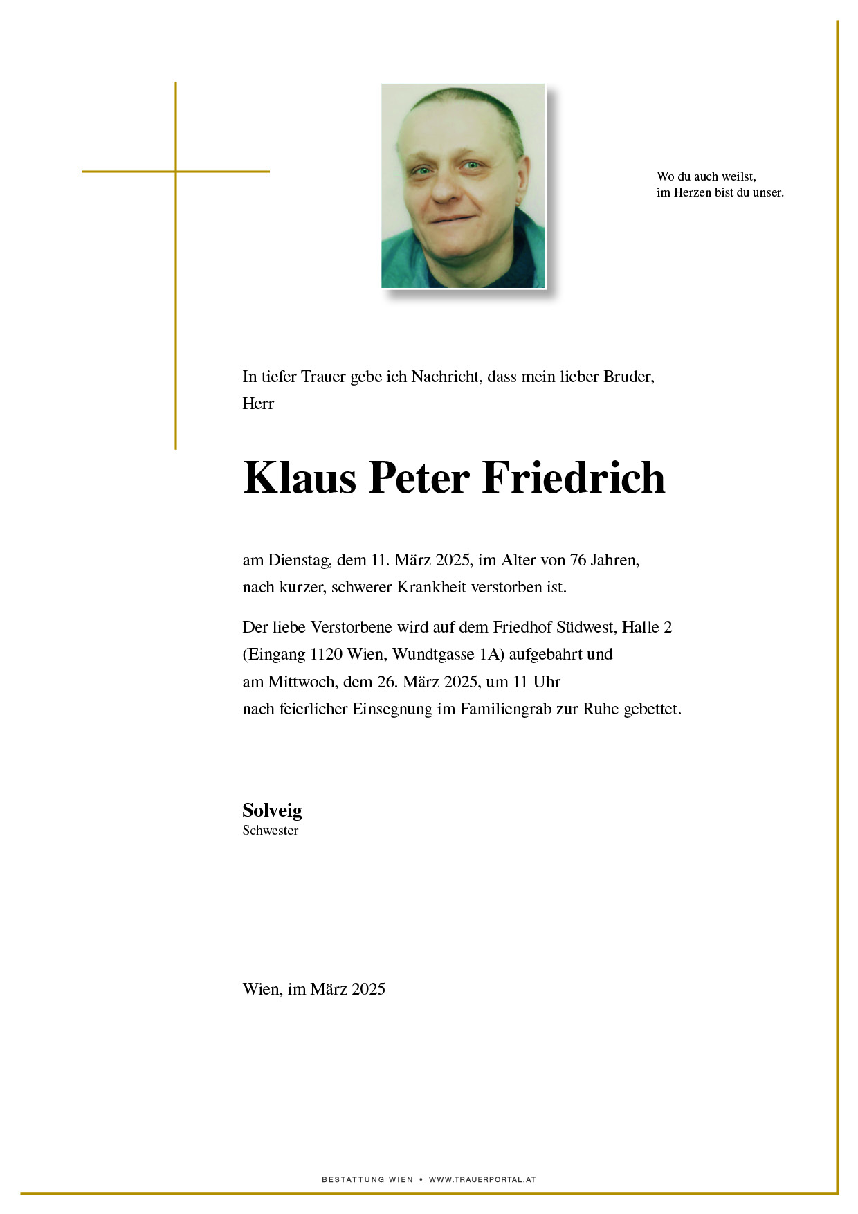Friedhof † 11.03.2025 (76 Jahre)