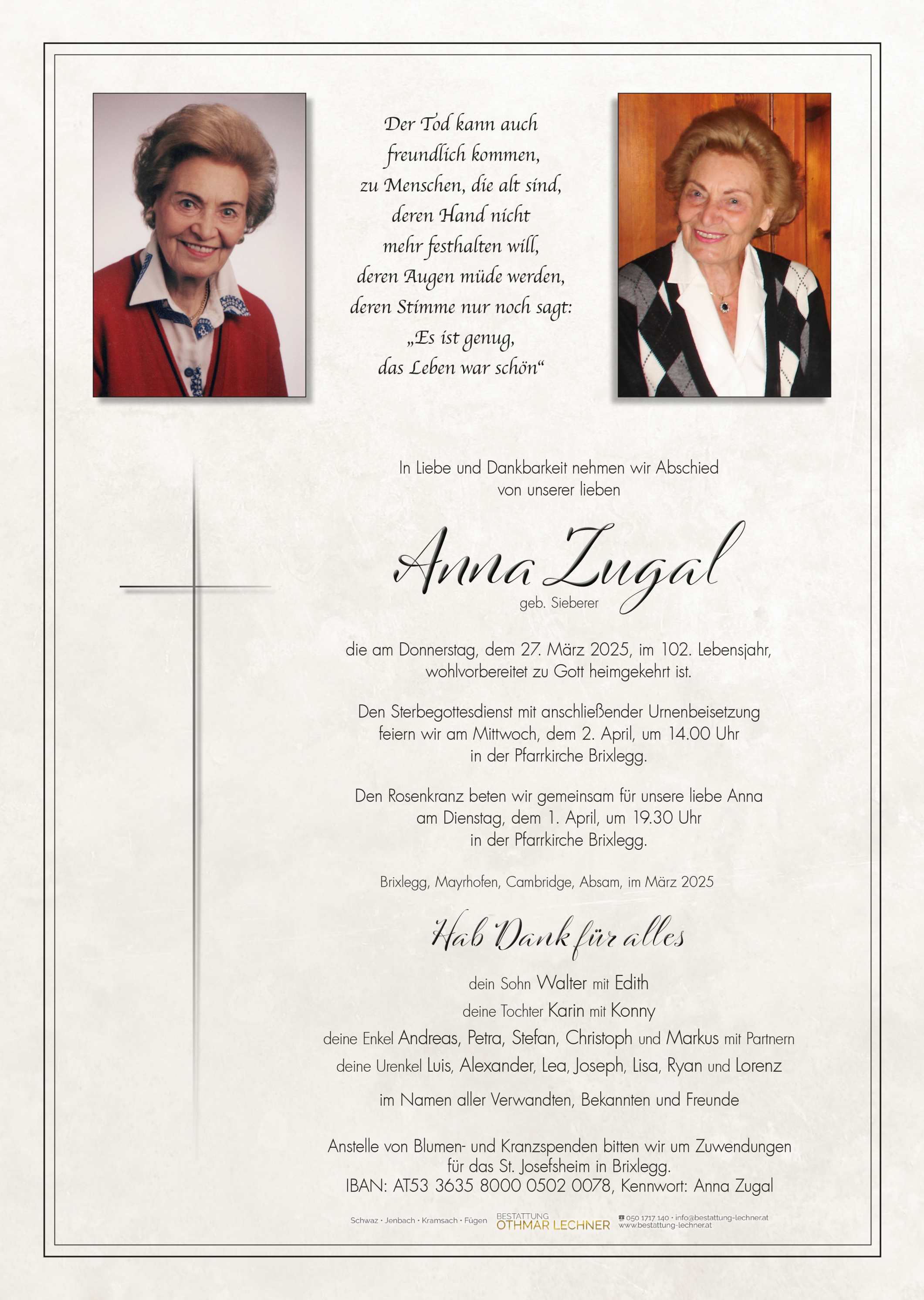 Friedhof Brixlegg, † 27.03.2025 (101 Jahre)