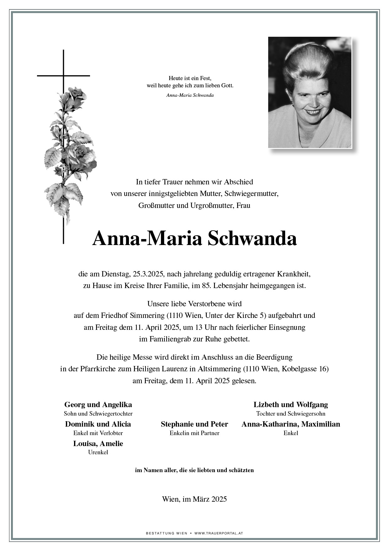 Friedhof † 25.03.2025 (84 Jahre)
