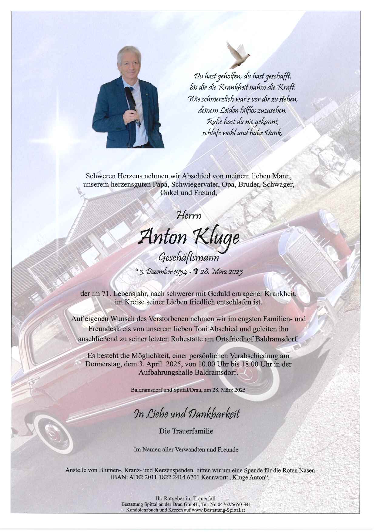 Toni hinterlässt eine große Lücke! Ein Freund, Brückenbauer, ein Wegbegleiter für Familie, Mitstreiter und Weiterdenker in unserem Spittal ist nicht mehr unter uns.