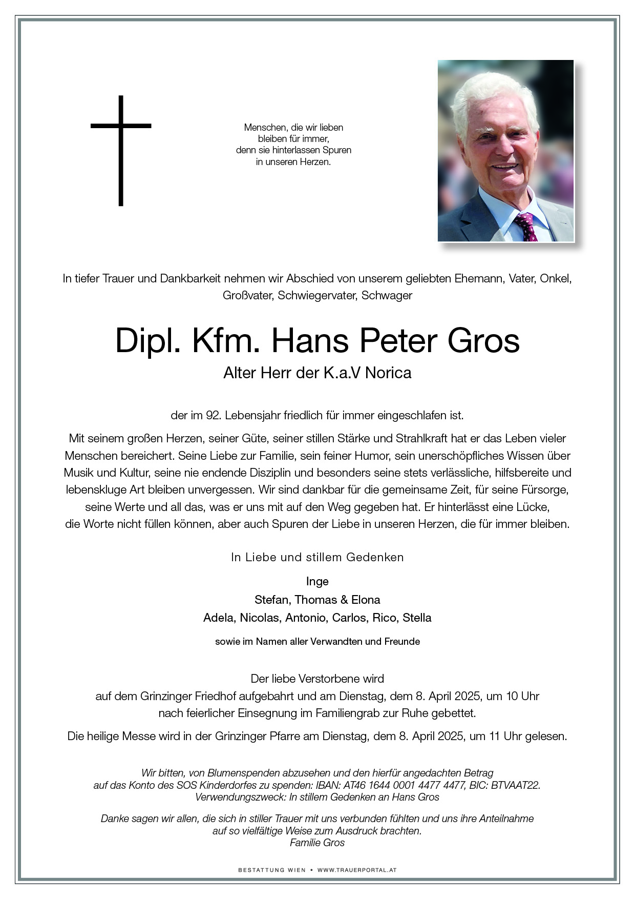 Bestattung wurde durchgeführt von: Bestattung Wien Bestattung Wien GmbH Simmeringer Hauptstraße 339 1110 - Wien (Simmering) Tel.: 01 501950 zum Bestatter