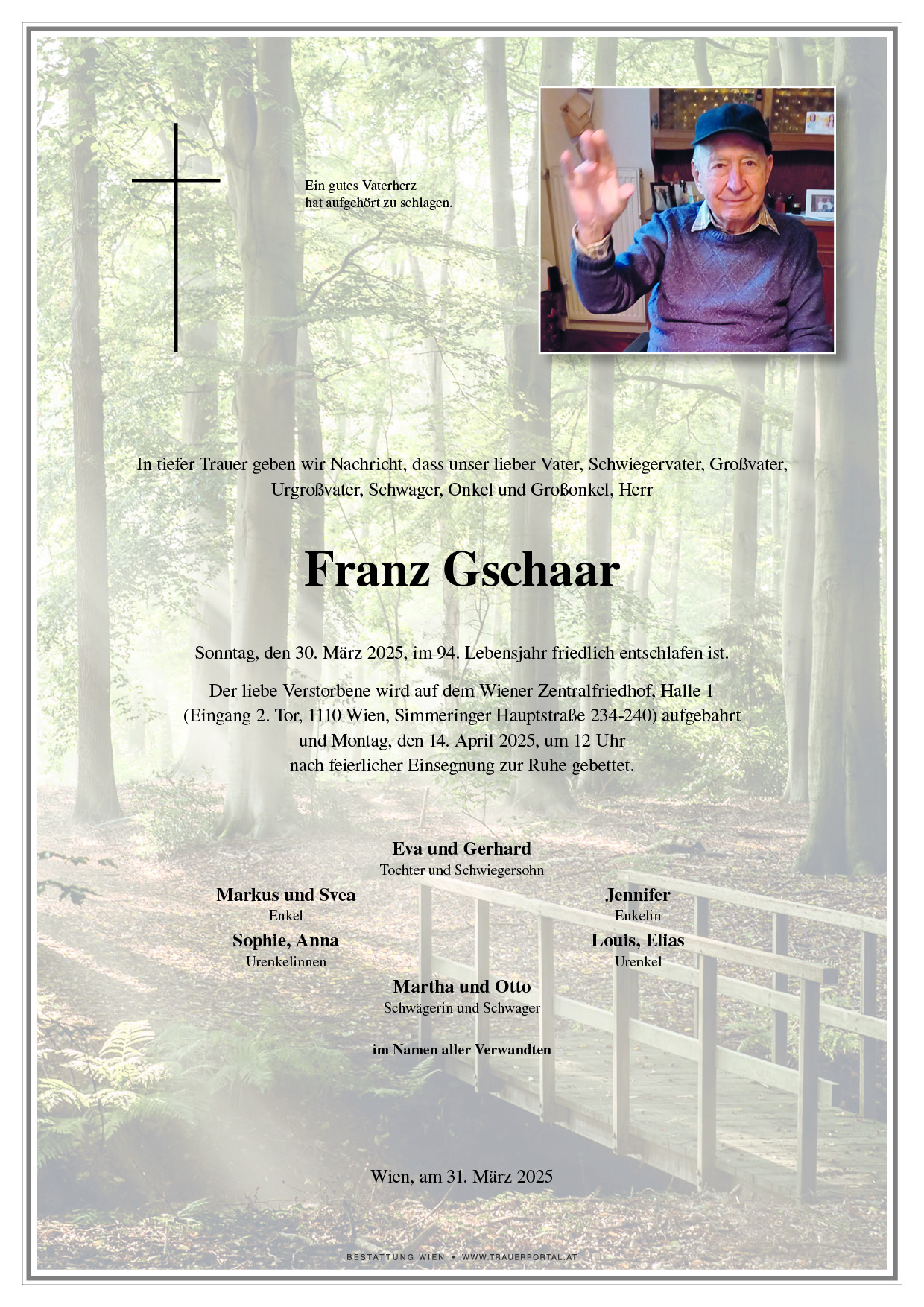 Bestattung wurde durchgeführt von: Bestattung Wien Bestattung Wien GmbH Simmeringer Hauptstraße 339 1110 - Wien (Simmering) Tel.: 01 501950 zum Bestatter