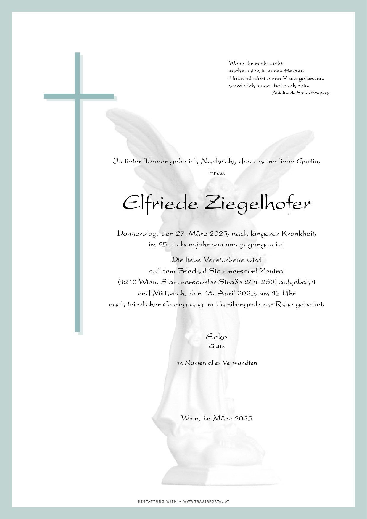Neue Kerze für Elfriede Ziegelhofer entzünden.