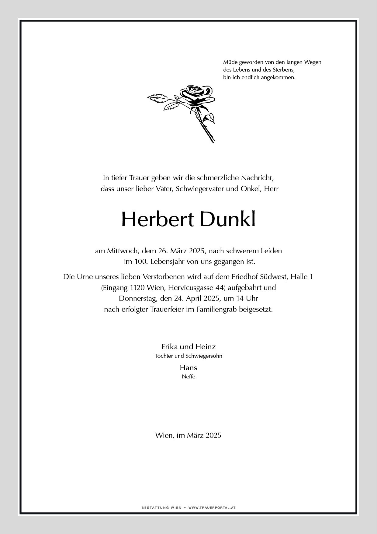 Friedhof † 26.03.2025 (99 Jahre)