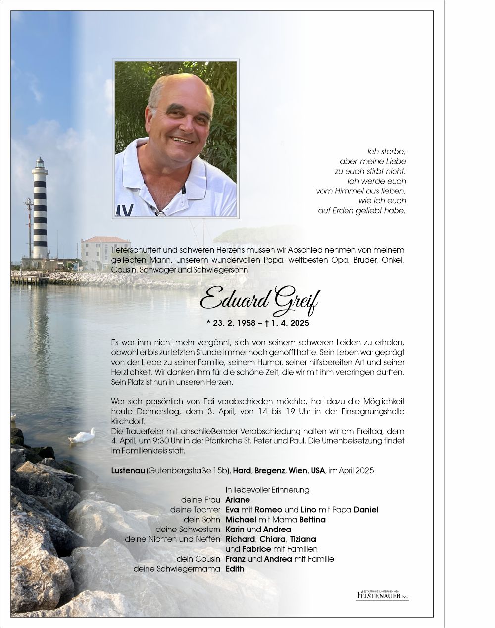 Friedhof Lustenau - Kirchdorf, † 01.04.2025 (67 Jahre)