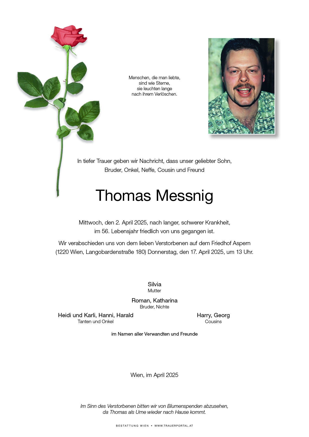 Mögen Euch diese begeisternden Wahrheiten in Eurer, Trauer, Trost, und Hoffnung auf ein glückliches irdisches Wiedersehen geben.