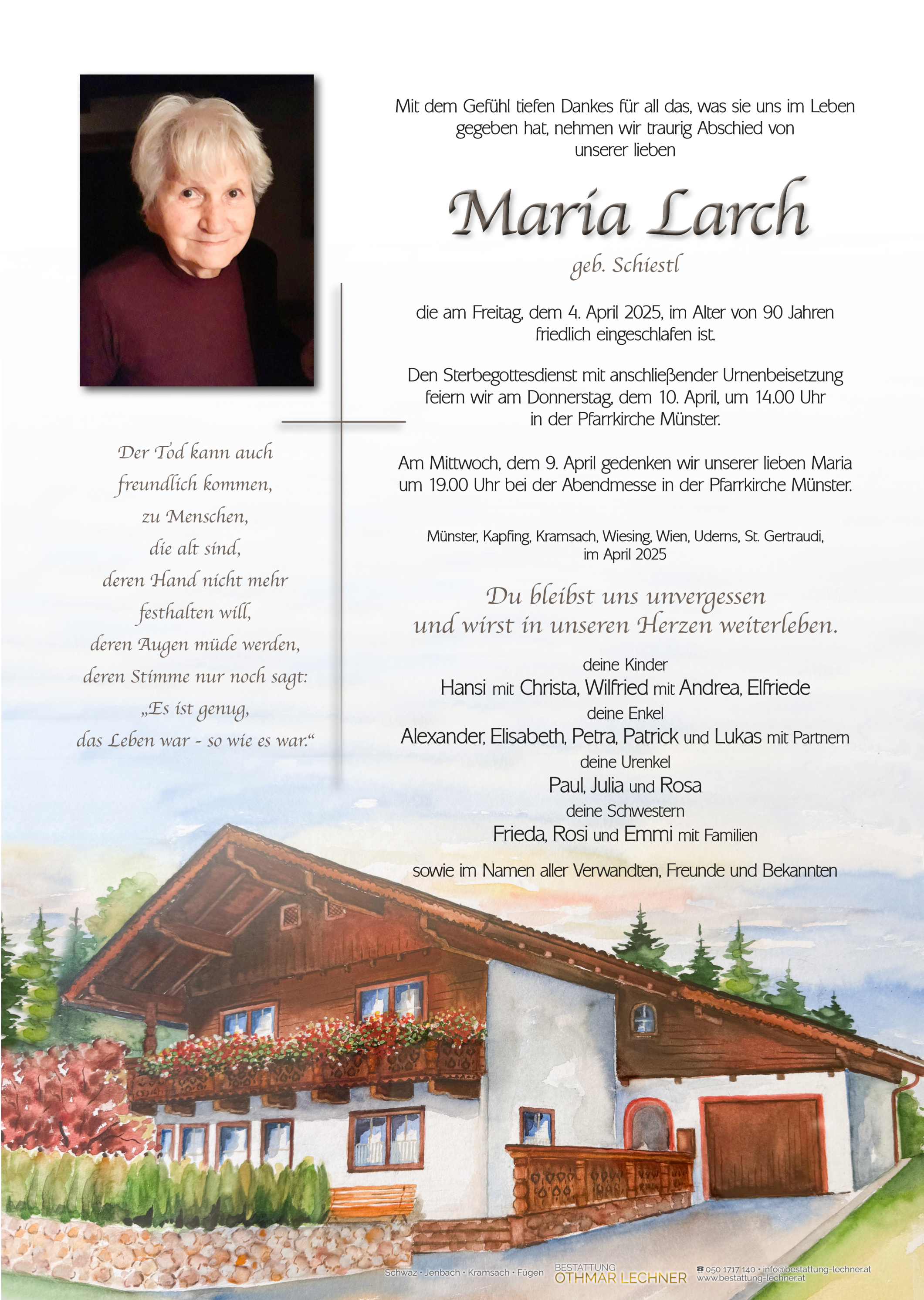Bestattung wurde durchgeführt von: Manuel Ram Manuel Ram Bestattung Othmar Lechner Husslstraße 40 6130 - Schwaz Tel.: 050 1717 140 zum Bestatter