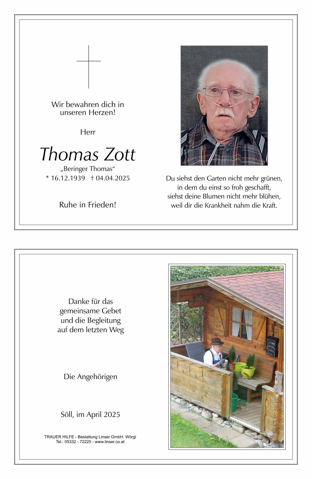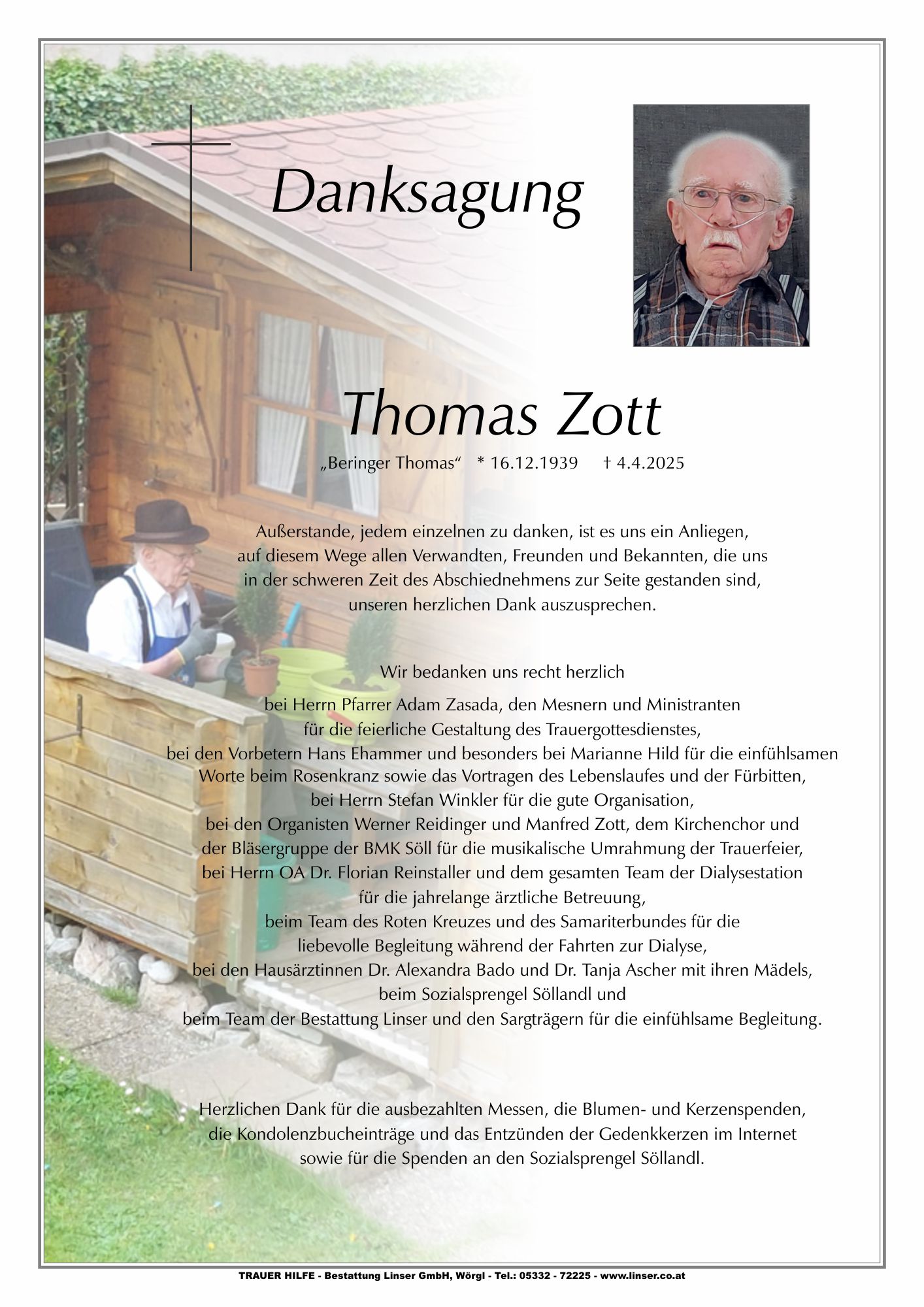 Bestattung wurde durchgeführt von: Walter Linser TrauerHilfe Bestattung Linser GmbH Wildschönauerstraße 41 6300 - Wörgl Tel.: 05332 72225 zum Bestatter