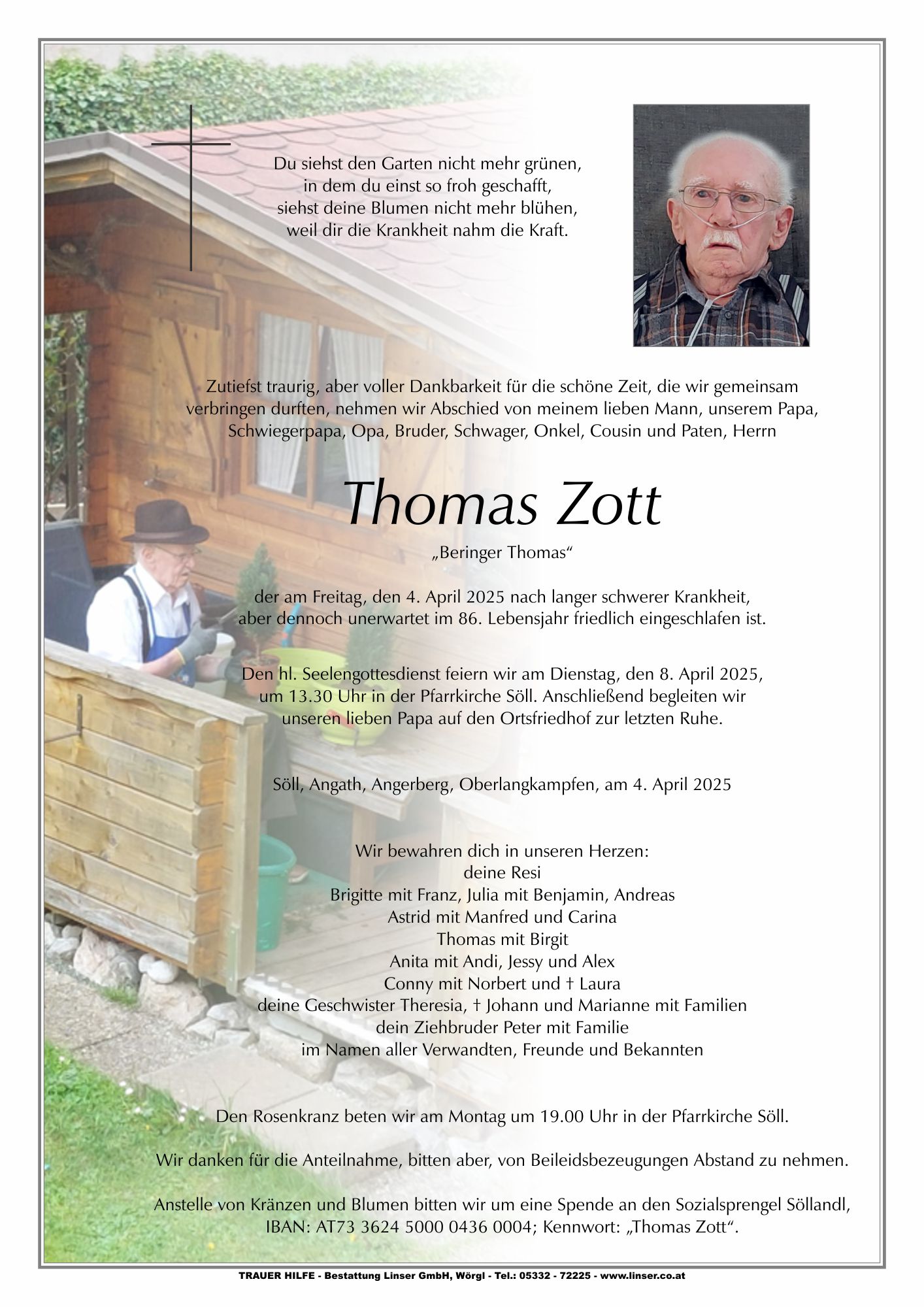 Friedhof Ortsfriedhof Söll, † 04.04.2025 (85 Jahre)