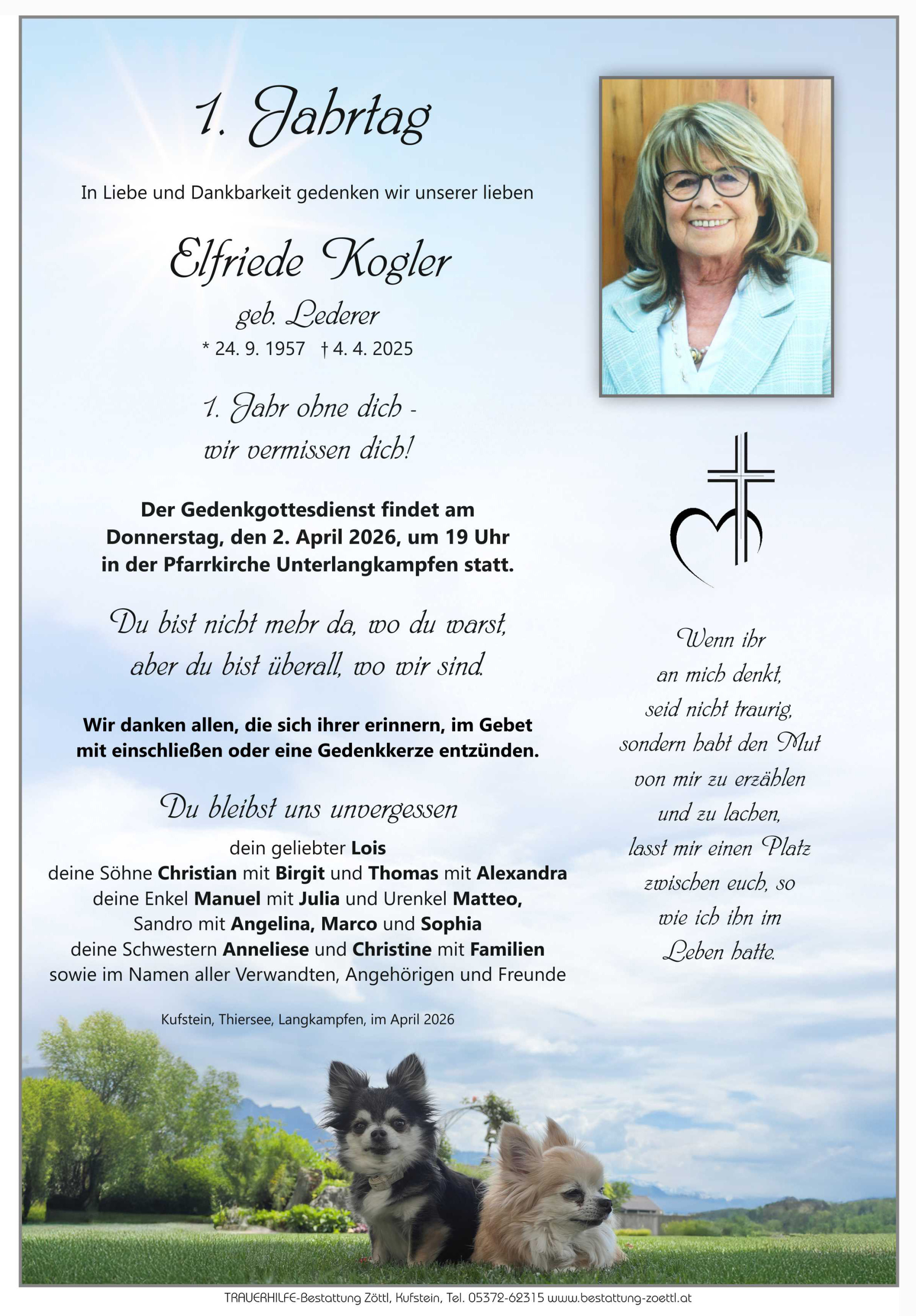 die positive Einstellung zum Leben und auch deine fürsorgliche Unterstützung Lois, haben Elfriede sehr geholfen, ihre Situation - besonders zuletzt - zu ertragen. Wir werden deine/eure Elfriede immer in liebevoller Erinnerung behalten.