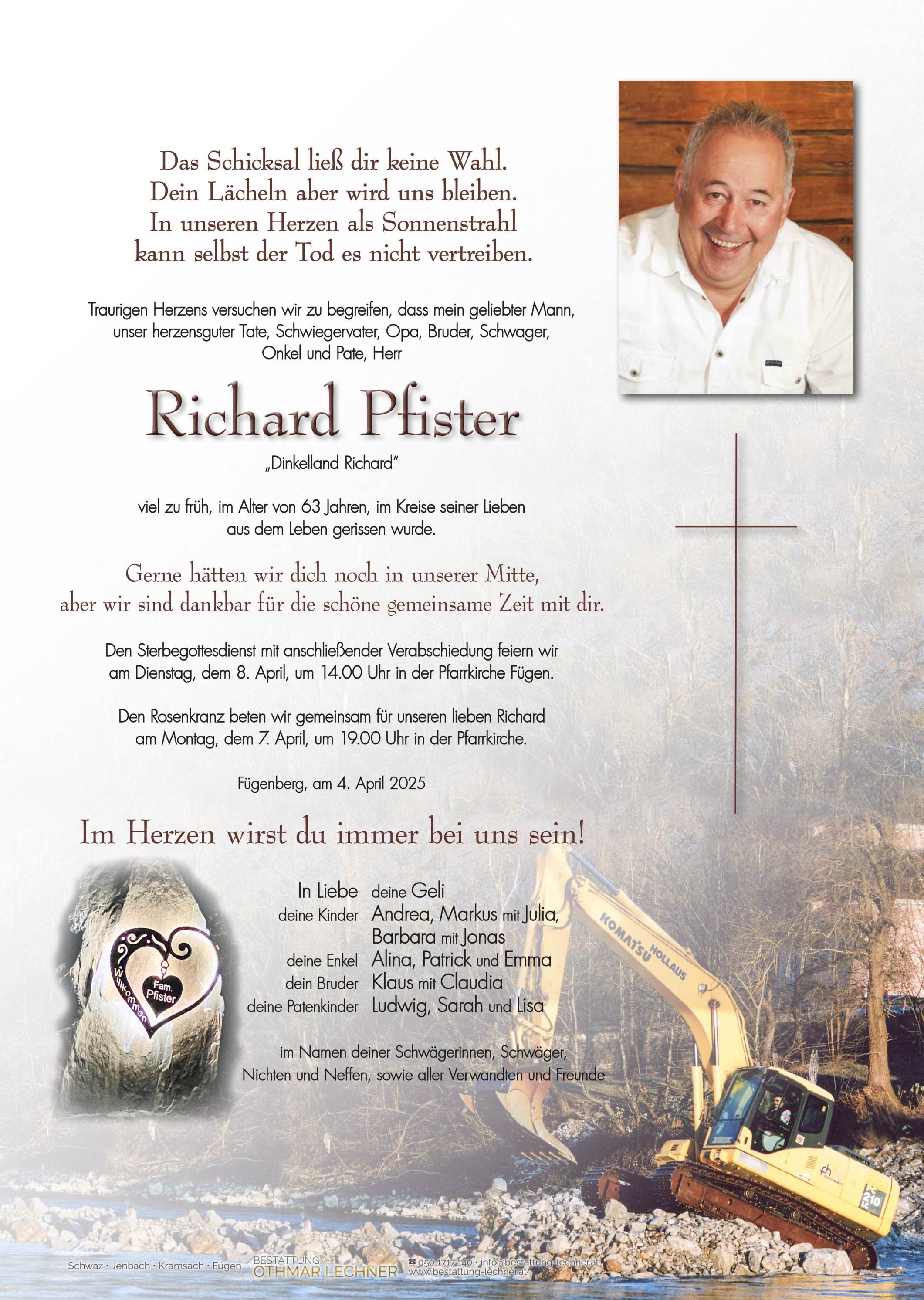 • Liebe Geli, es tut mir so unendlich leid, dass du so früh von deinem Richard für immer Abschied nehmen musst. Ich wünsche dir und deinen Lieben ganz viel Kraft in dieser schweren Zeit. Mein herzliches Beileid. Andrea
