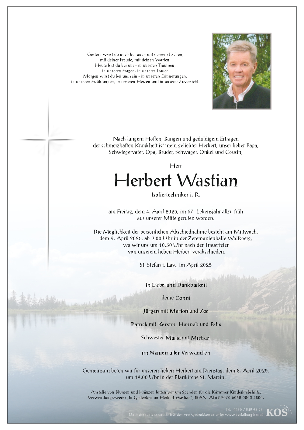 Neue Kerze für Herbert Wastian entzünden.