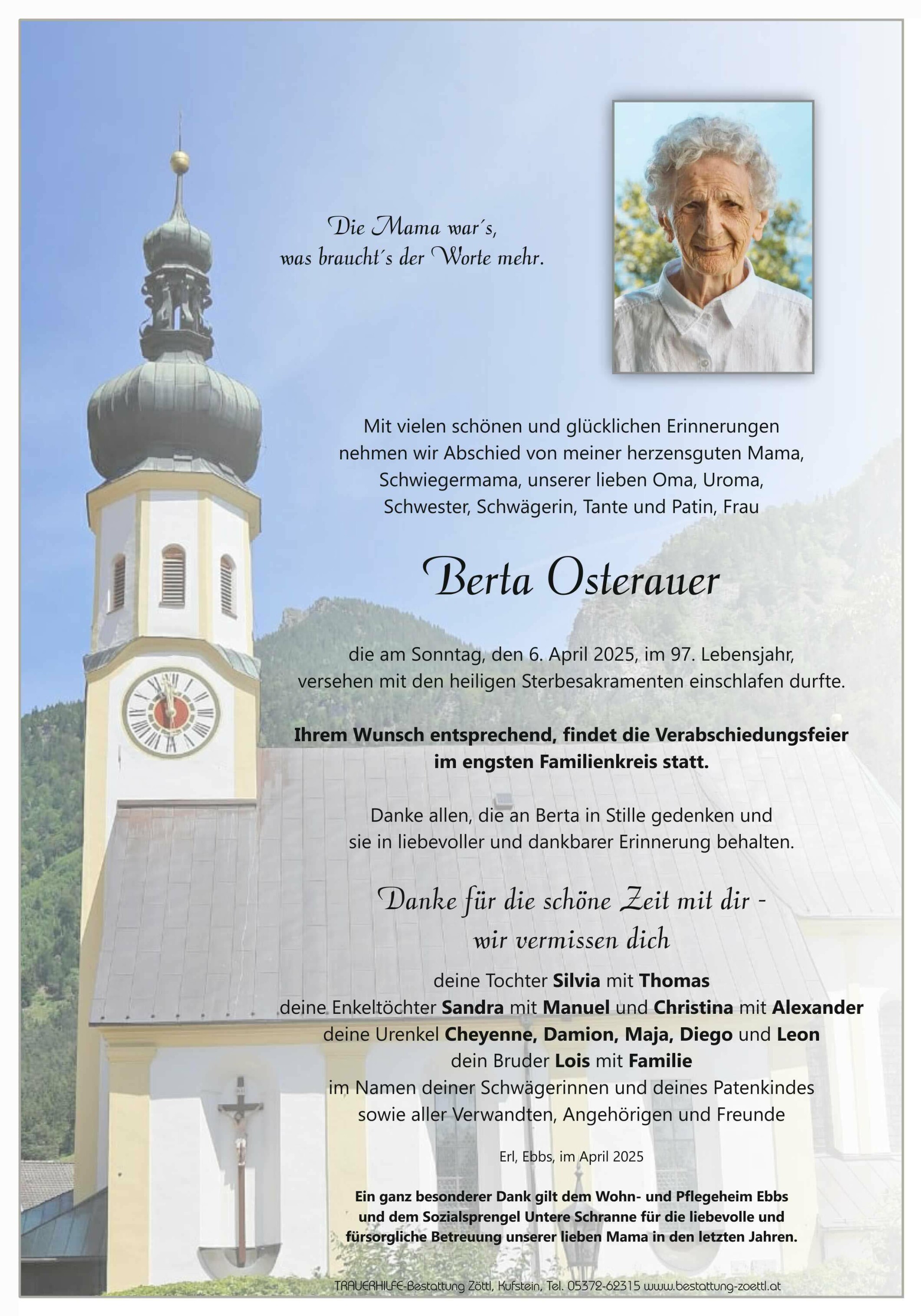 Friedhof Neuer Friedhof Ebbs, † 06.04.2025 (96 Jahre)