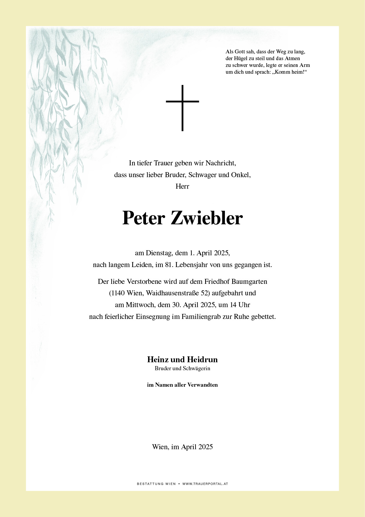 Friedhof † 01.04.2025 (80 Jahre)