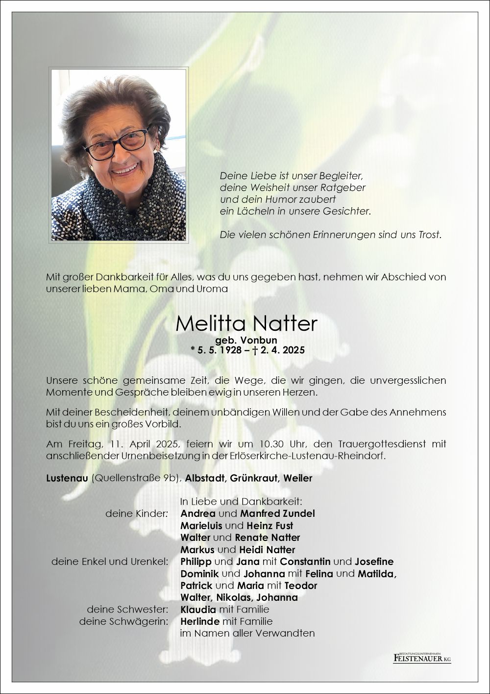 Friedhof Lustenau - Rheindorf, † 02.04.2025 (96 Jahre)