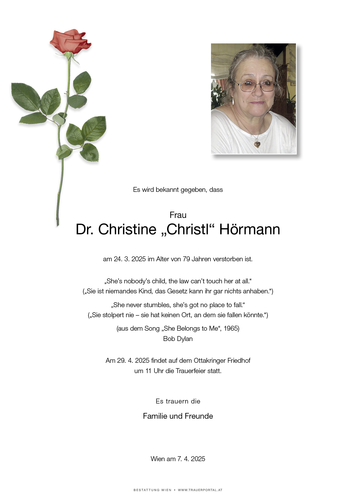 Bestattung wurde durchgeführt von: Bestattung Wien Bestattung Wien GmbH Simmeringer Hauptstraße 339 1110 - Wien (Simmering) Tel.: 01 501950 zum Bestatter