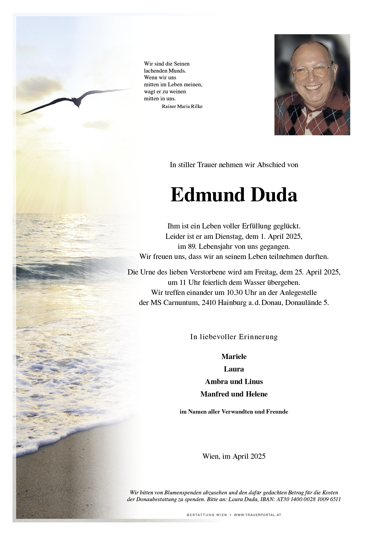 Bestattung wurde durchgeführt von: Bestattung Wien Bestattung Wien GmbH Simmeringer Hauptstraße 339 1110 - Wien (Simmering) Tel.: 01 501950 zum Bestatter