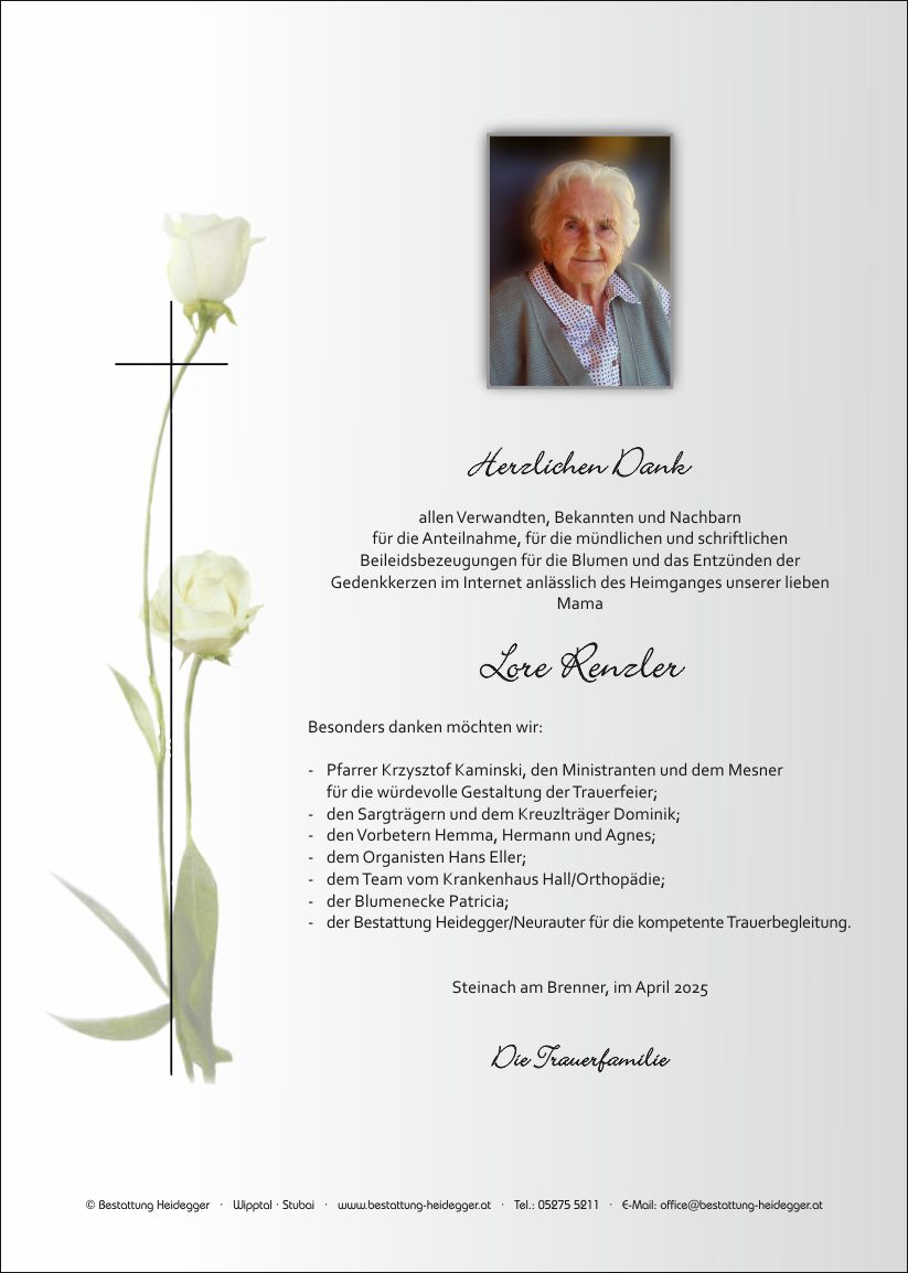 Bestattung wurde durchgeführt von: Karl Neurauter Karl Neurauter Bestattung Heidegger Brennerstraße 69 6150 - Steinach am Brenner Tel.: 05275 5211 zum Bestatter