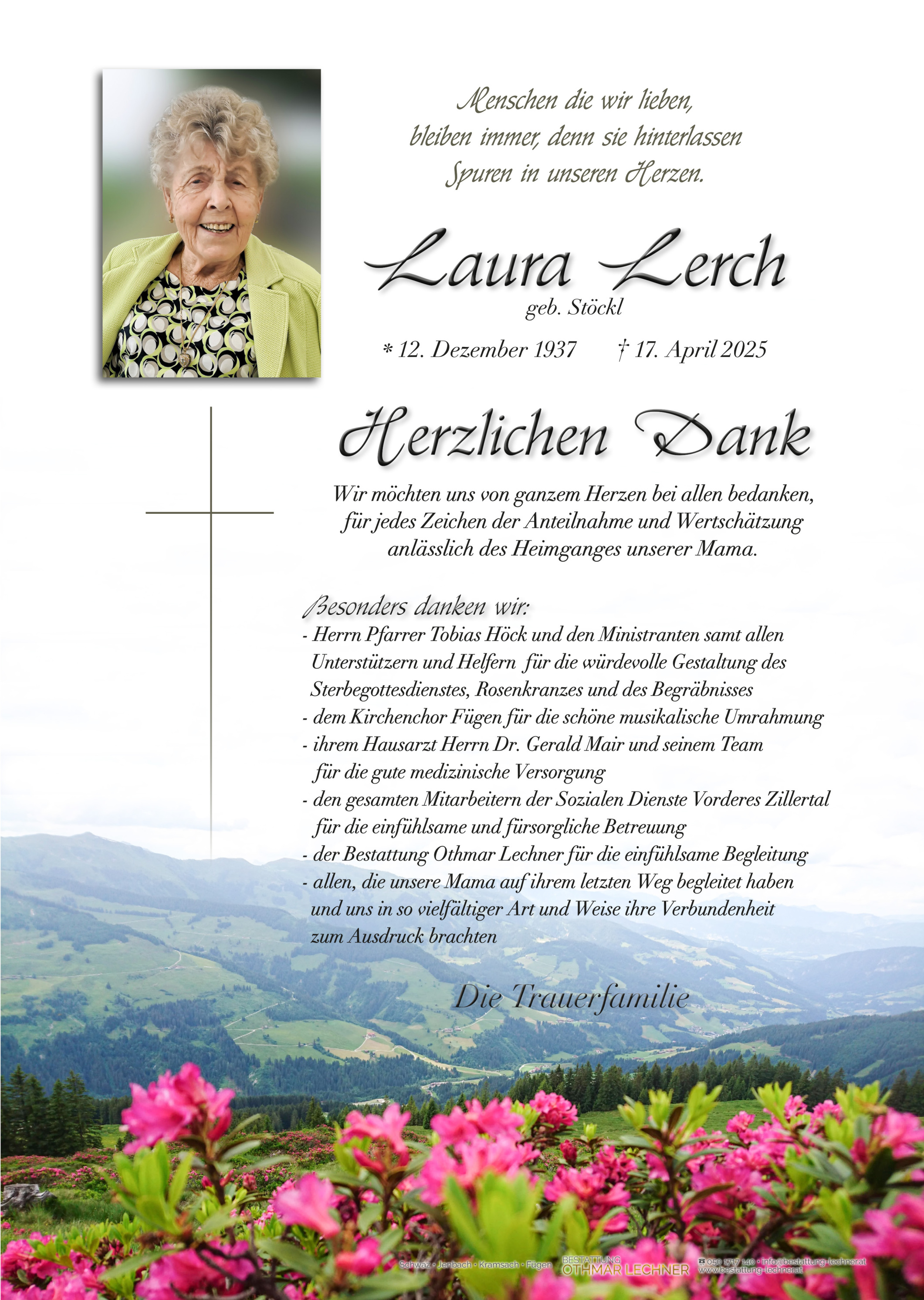 Bestattung wurde durchgeführt von: Manuel Ram Manuel Ram Bestattung Othmar Lechner Husslstraße 40 6130 - Schwaz Tel.: 050 1717 140 zum Bestatter