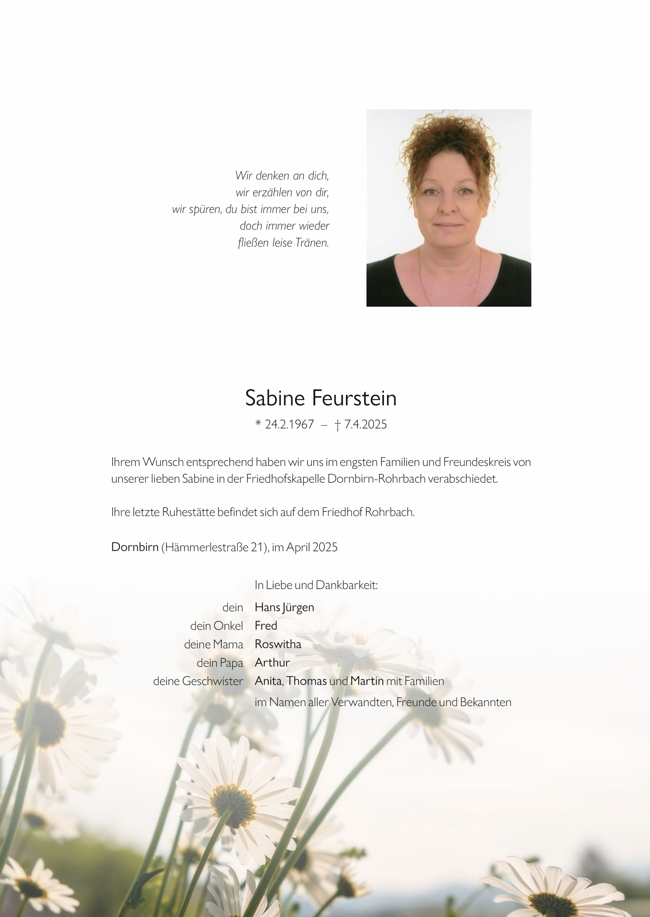 Friedhof Dornbirn - Rohrbach, † 07.04.2025 (58 Jahre)