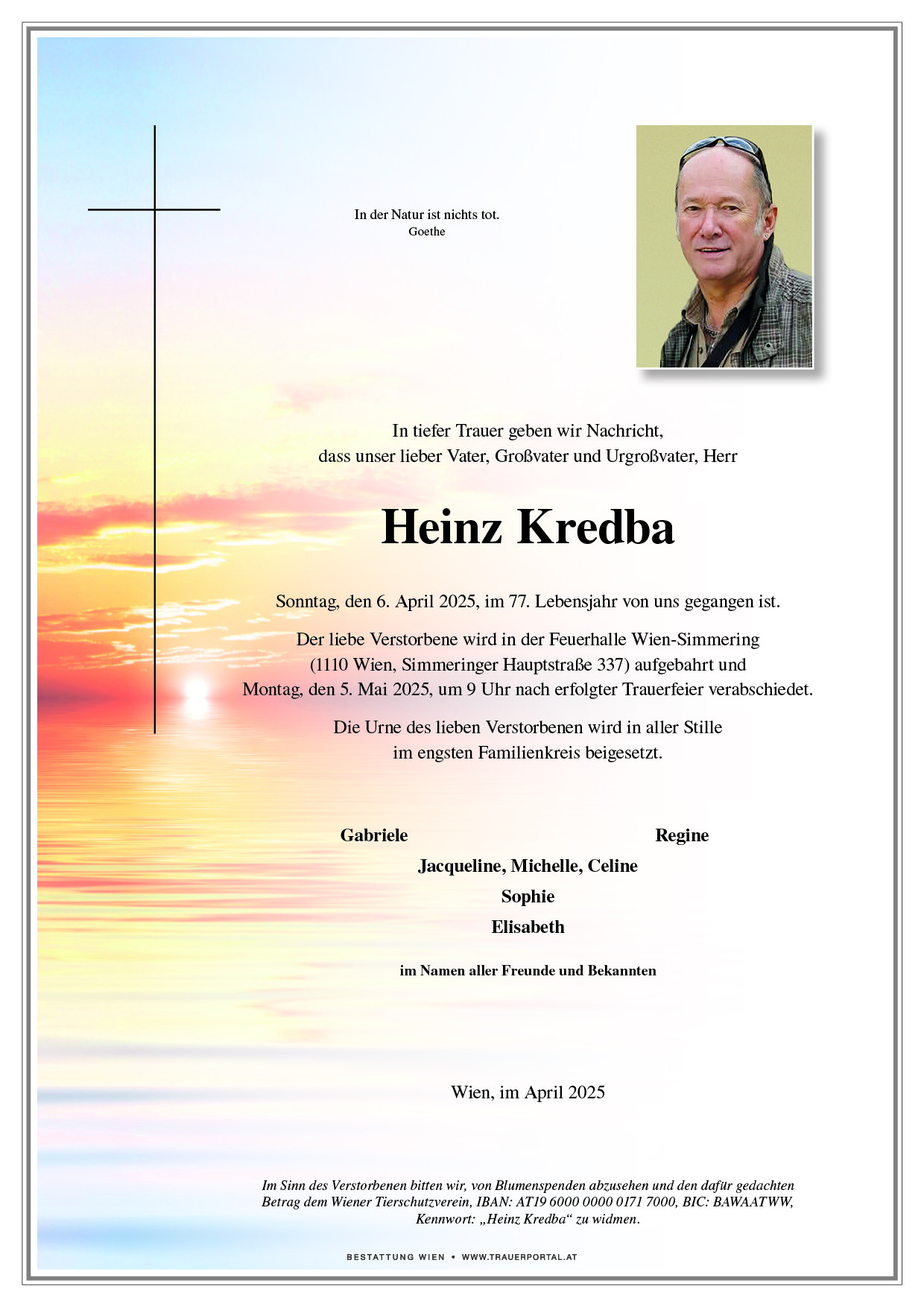 Bestattung wurde durchgeführt von: Bestattung Wien Bestattung Wien GmbH Simmeringer Hauptstraße 339 1110 - Wien (Simmering) Tel.: 01 501950 zum Bestatter