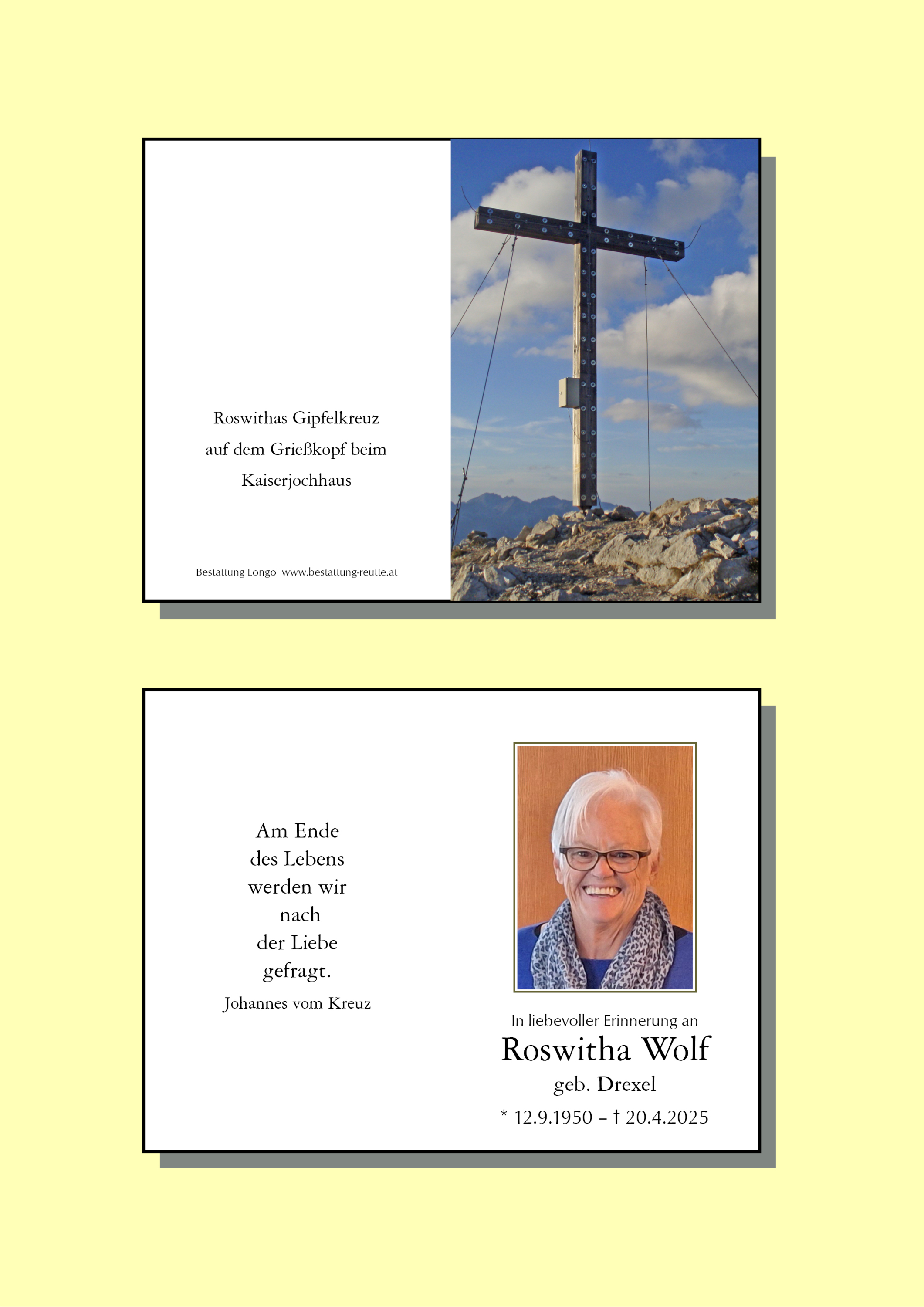 Bei der wichtigsten Aufnahmeprüfung, die für den Eintritt in eine andere Welt, bist du mir jetzt zuvorgekommen und hast sie, alle irdischen Sorgen und Schmerzen hinter dir lassend, sicher mit Bravour bestanden. Roswitha, wo du jetzt bist, da bin ich mir ganz sicher, werden dich alle grüßen!