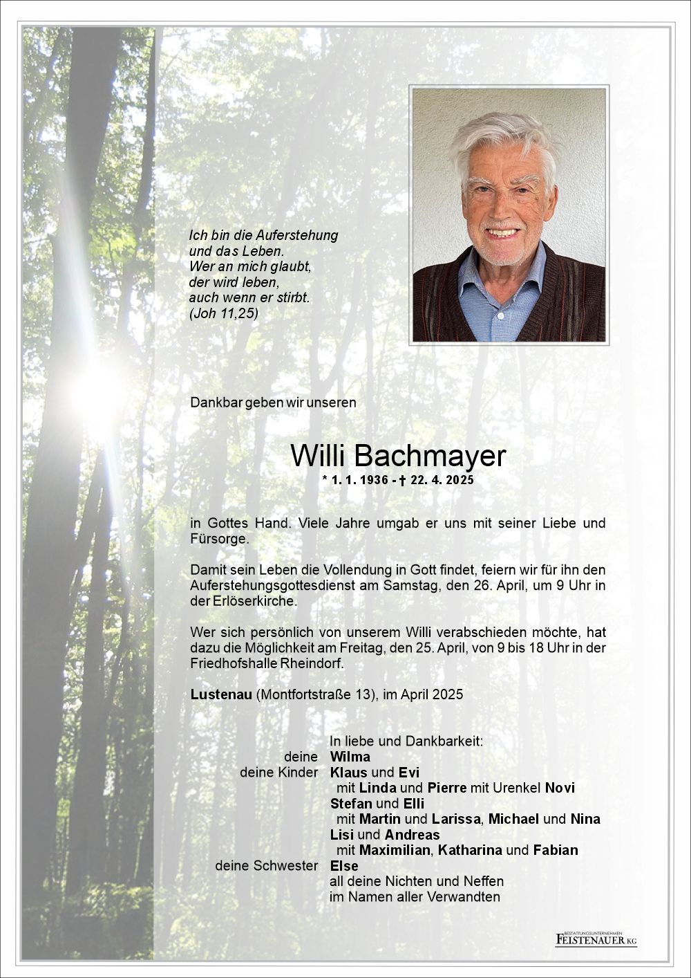 Friedhof Lustenau - Rheindorf, † 22.04.2025 (89 Jahre)
