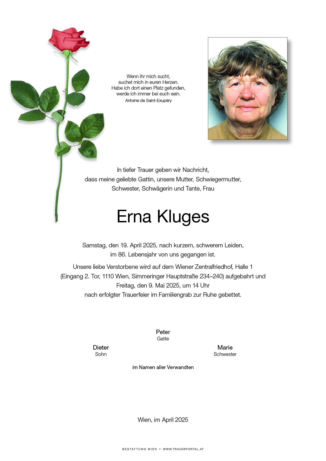 Bestattung wurde durchgeführt von: Bestattung Wien Bestattung Wien GmbH Simmeringer Hauptstraße 339 1110 - Wien (Simmering) Tel.: 01 501950 zum Bestatter