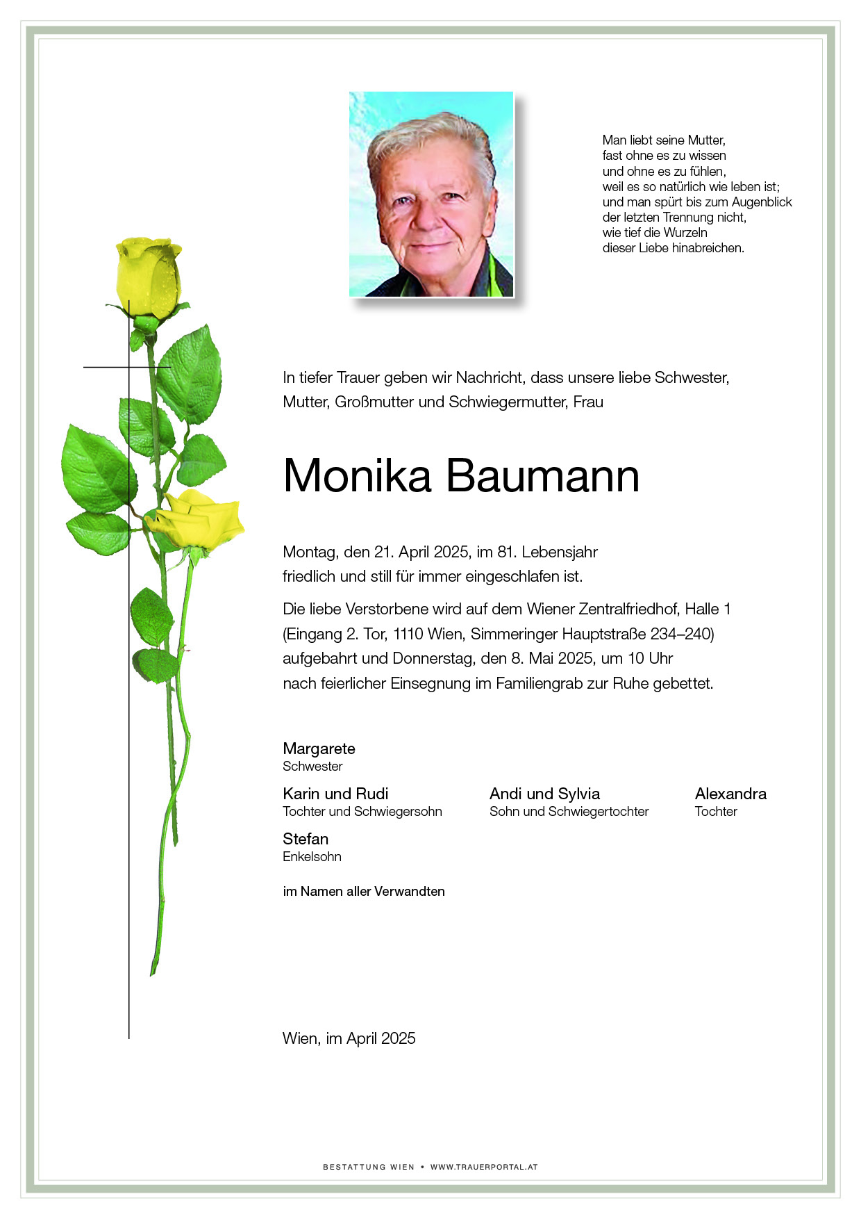 Bestattung wurde durchgeführt von: Bestattung Wien Bestattung Wien GmbH Simmeringer Hauptstraße 339 1110 - Wien (Simmering) Tel.: 01 501950 zum Bestatter