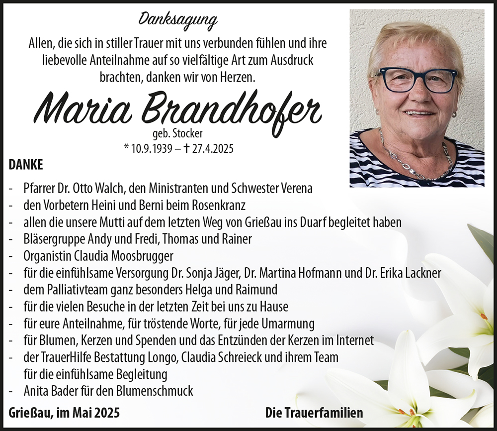 Es ist schwer die richtigen Worte zu finden, wenn ein liebes Familienmitglied gestorben ist. Wir möchten euch unser aufrichtiges Beileid wünschen und sind uns sicher, dass Maria zwar von Erden gegangen ist, aber in euren Herzen ewig weiter leben wird!