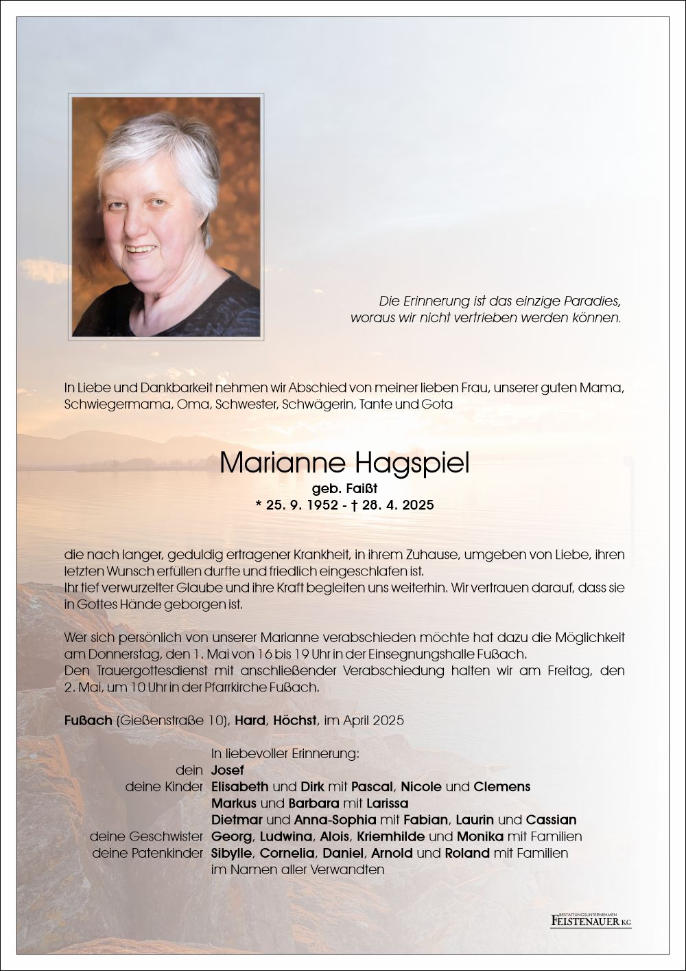 Friedhof Fußach, † 28.04.2025 (72 Jahre)
