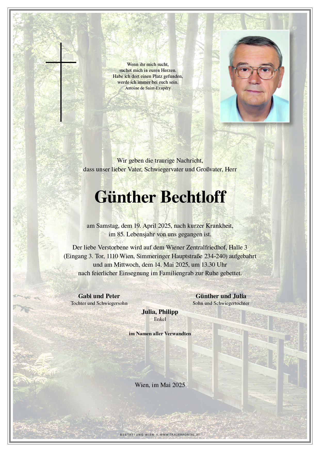 Bestattung wurde durchgeführt von: Bestattung Wien Bestattung Wien GmbH Simmeringer Hauptstraße 339 1110 - Wien (Simmering) Tel.: 01 501950 zum Bestatter