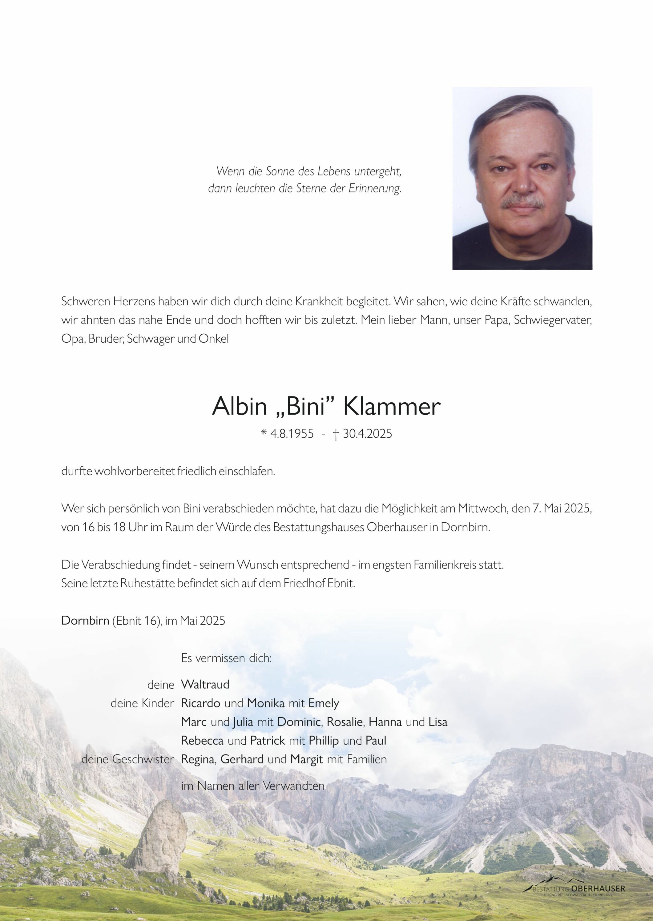 Friedhof Dornbirn - Ebnit, † 30.04.2025 (69 Jahre)
