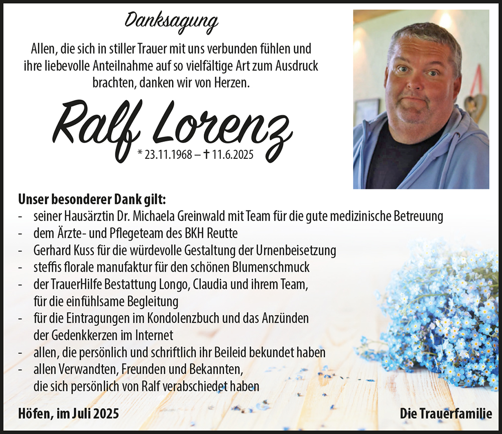 Aufrichtige Anteilnahme zum Verlust von eurem Ralf.