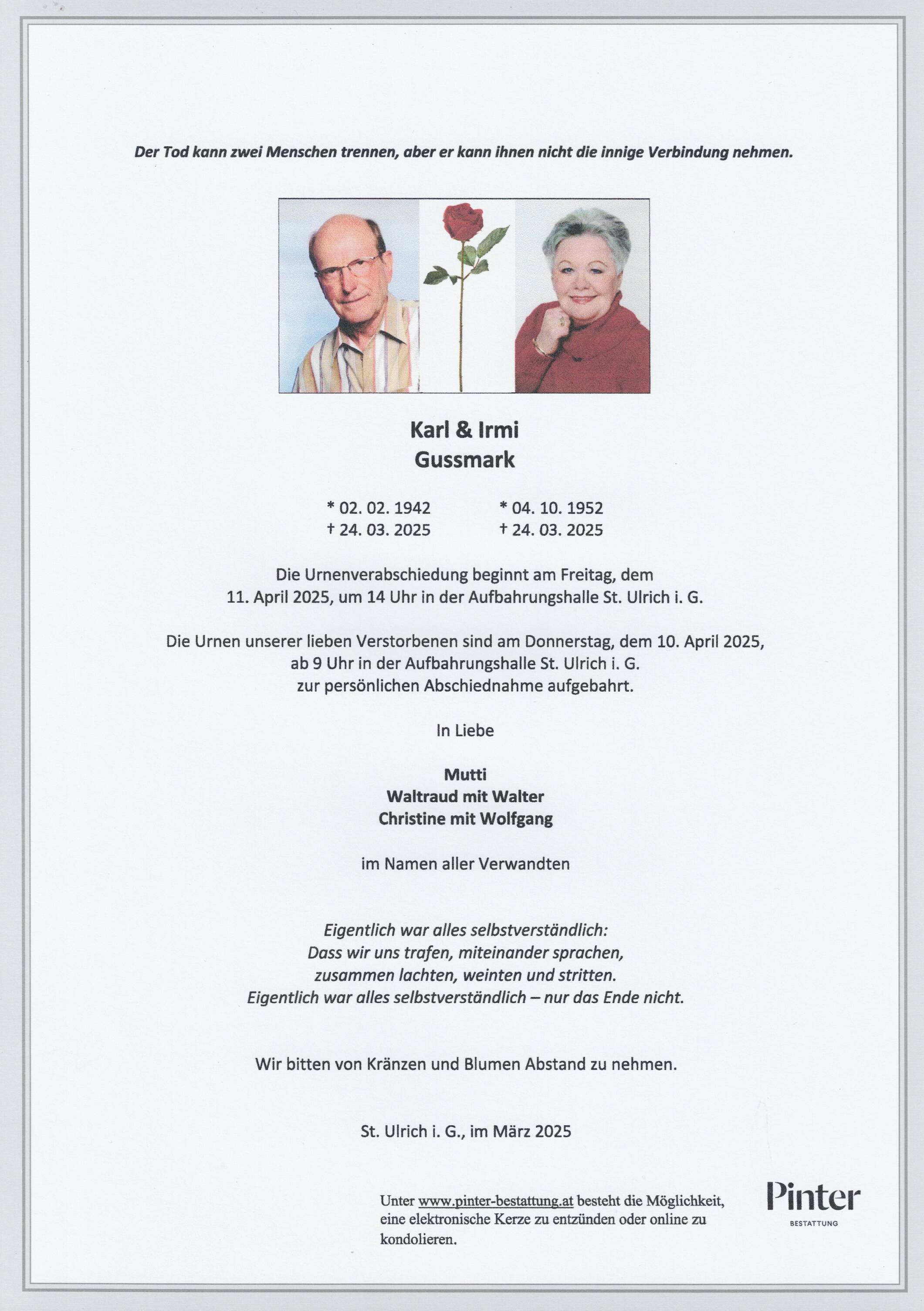 Bestattung wurde durchgeführt von: Pinter GmbH Pinter GmbH Nelkengasse 1-3 8530 - Deutschlandsberg Tel.: +43 3462 2907 zum Bestatter