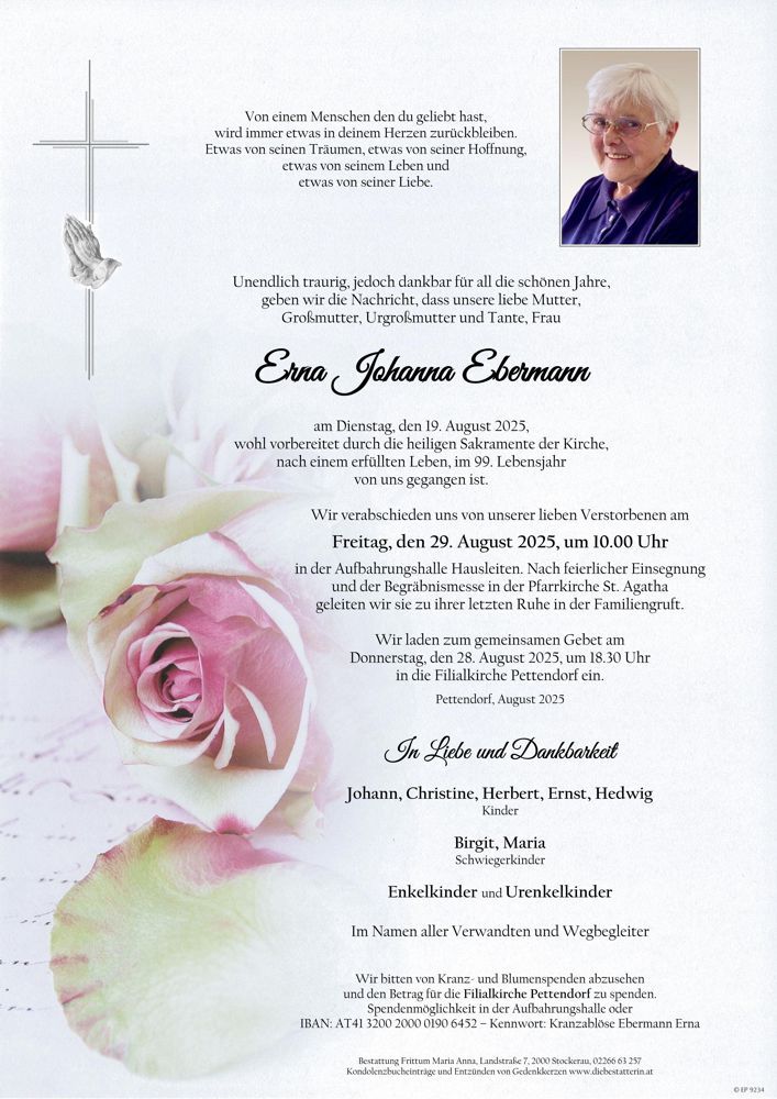 Friedhof Aufbahrungshalle Hausleiten, † 19.08.2025 (98 Jahre)
