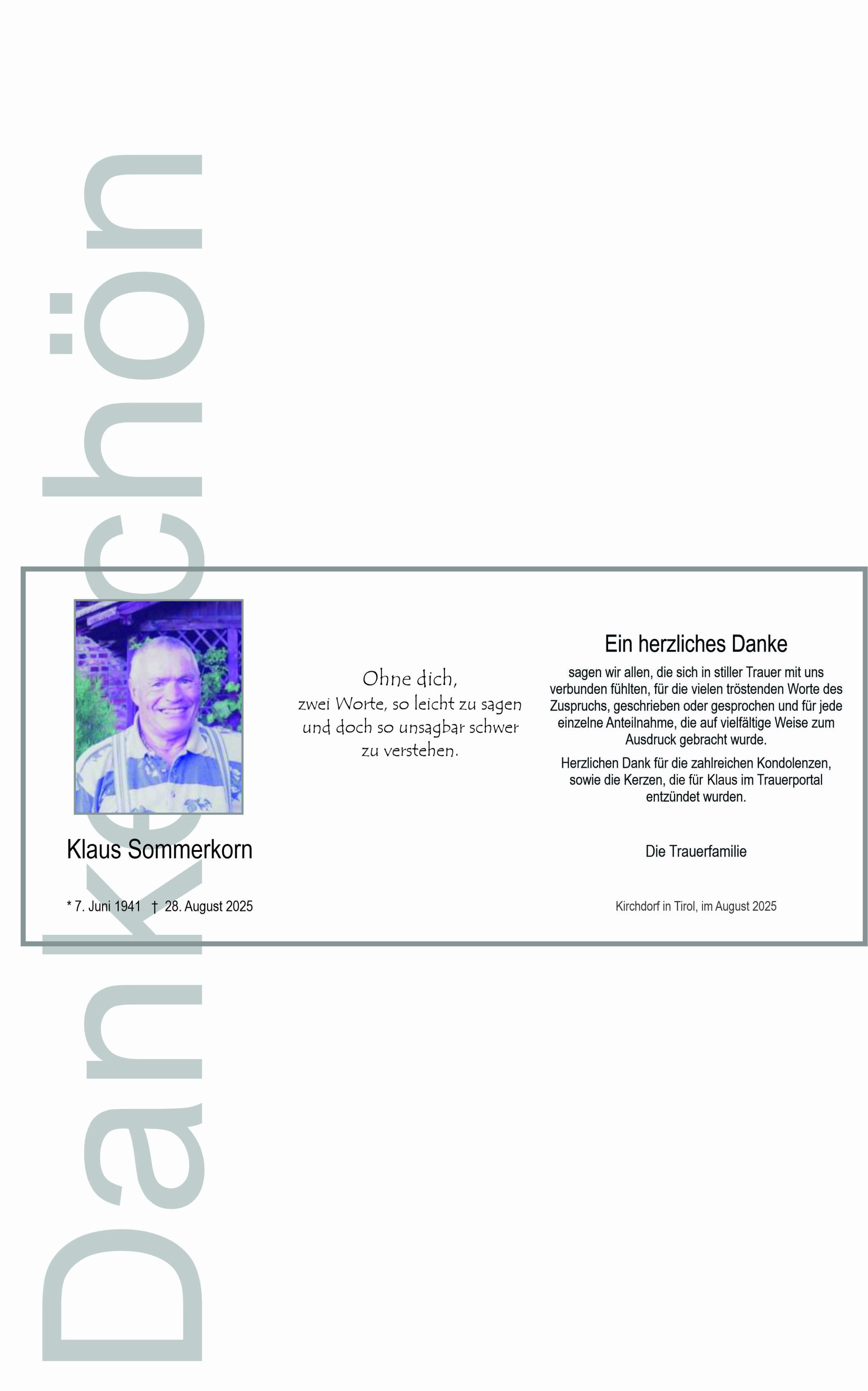 Zum Tod deines geliebten Klaus unsere aufrichtige Anteilnahme.